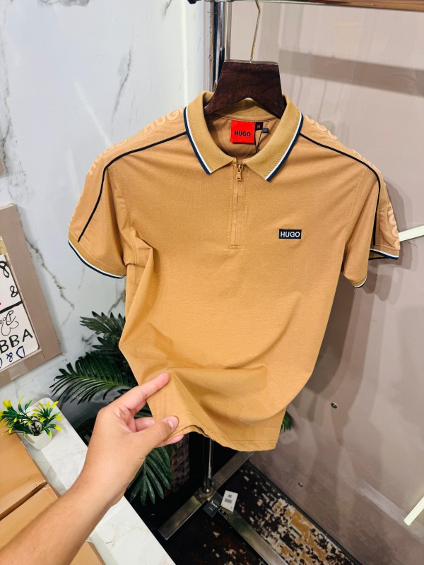 SALE Bos_s Navy Blue Premium Polo Neck Tshirt 447