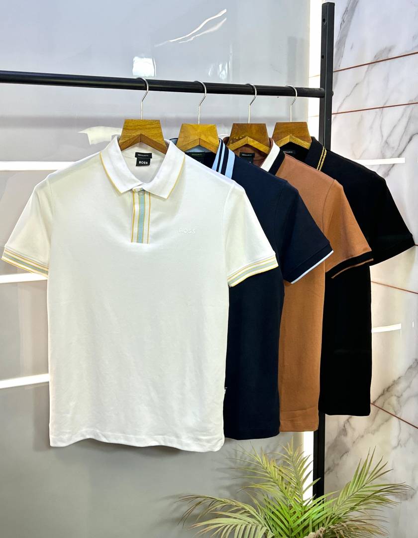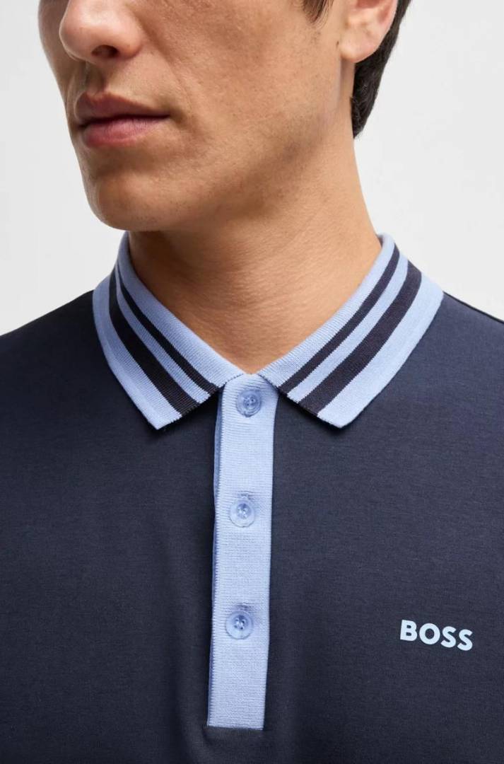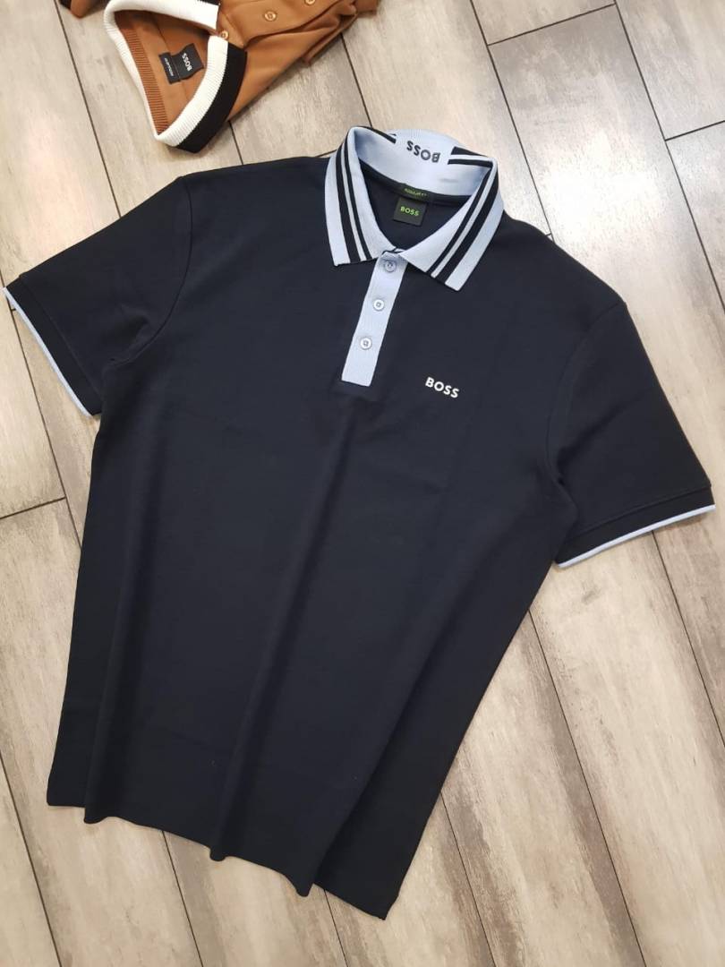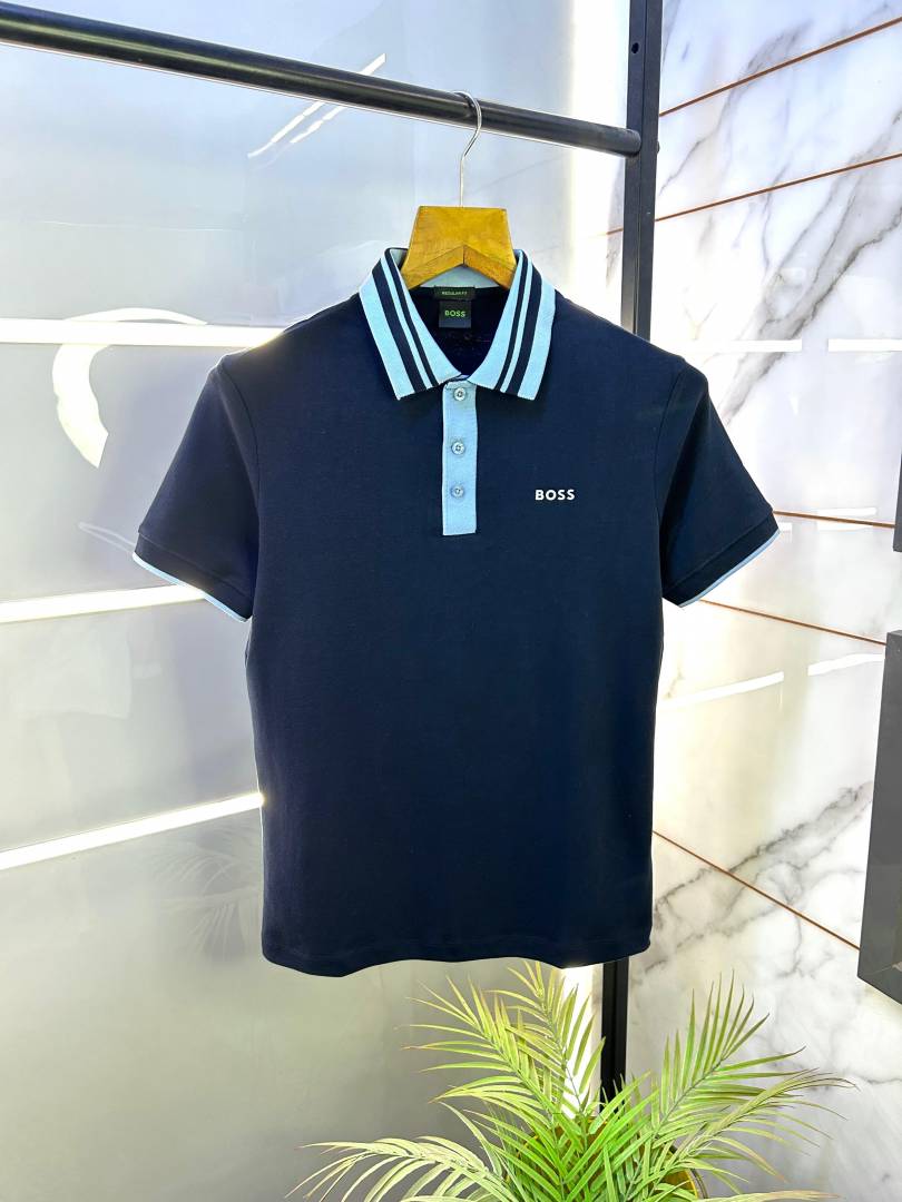 Hugo Bos s Navy Premium 240 gsm interlock cotton fabric Polo Tshirt with Front Design and Emboss Logo 3178