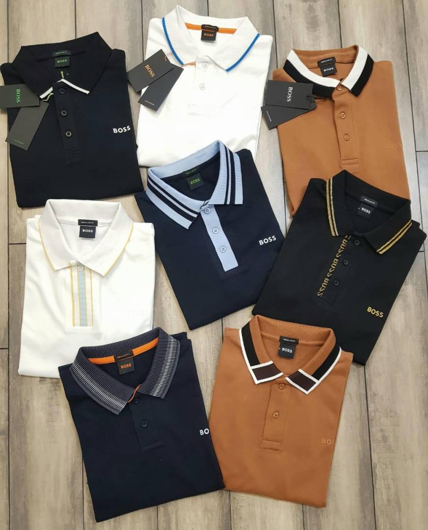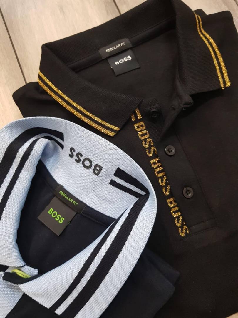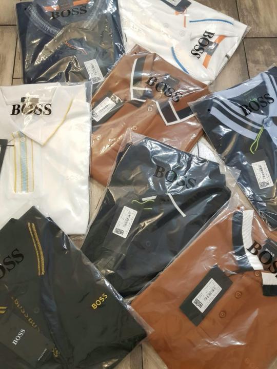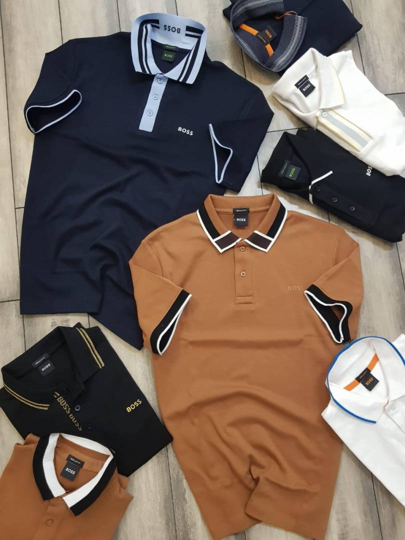 Hugo Bos s Navy Premium 240 gsm interlock cotton fabric Polo Tshirt with Front Design and Emboss Logo 3178