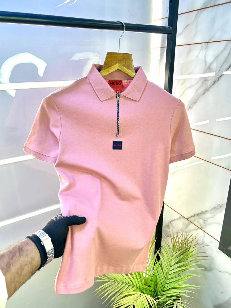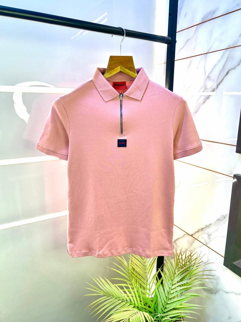 Hugo_Boss Pink Polo Premium Collar Neck T-shirt With Brand Box Packing F2014-PI