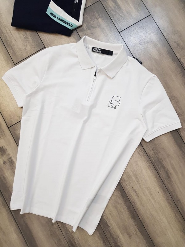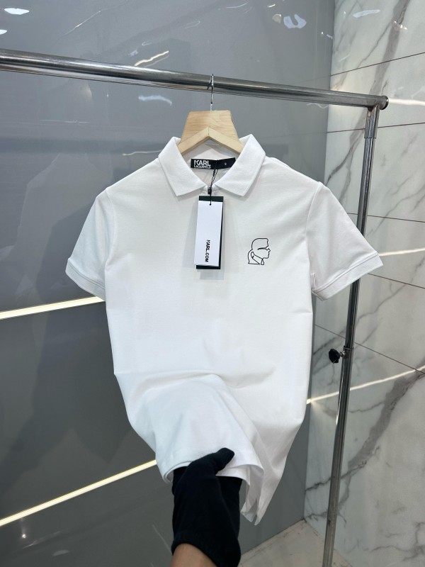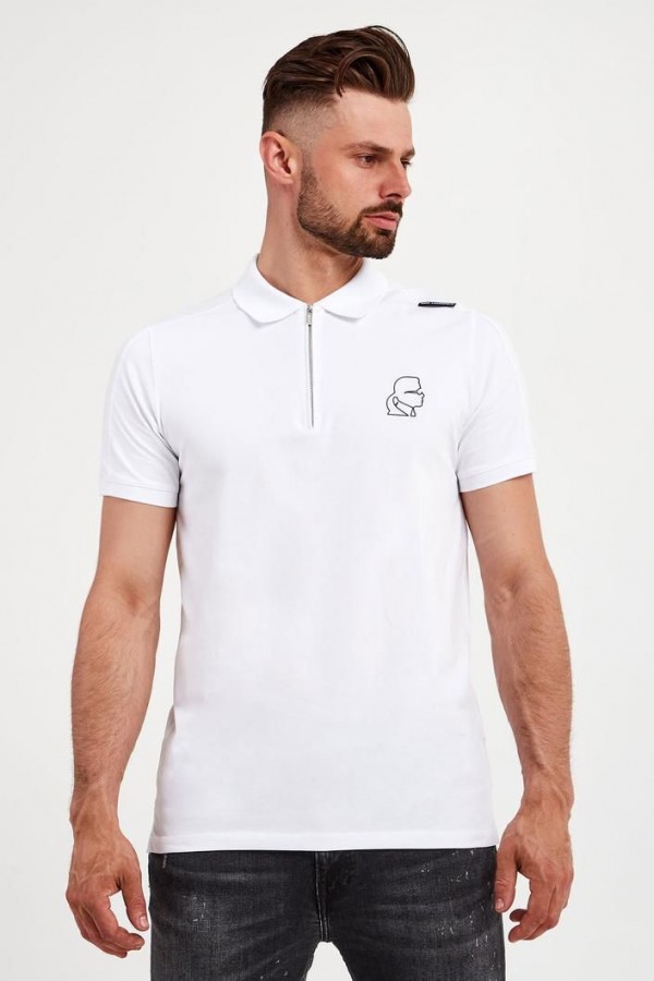 Karl Lagerfeld Premium Polo With 240Gsm Interlock Cotton Lycra Fabric White 1827
