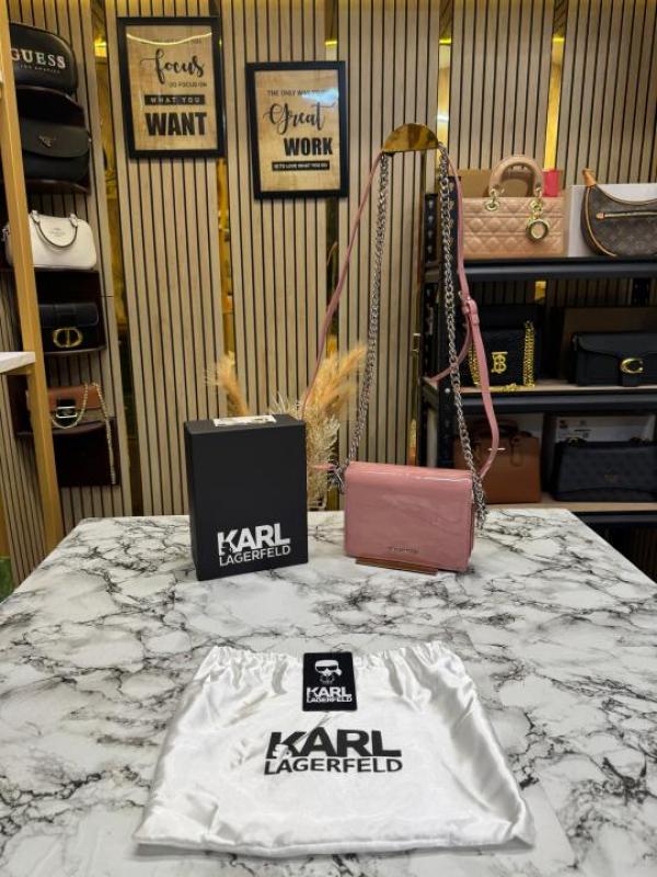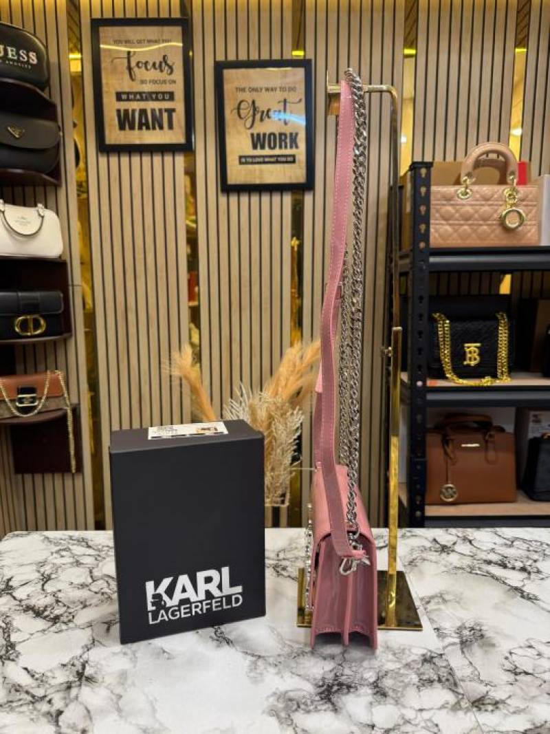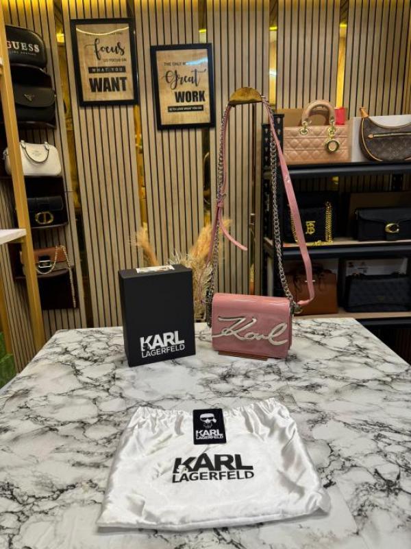 KARL LAGERFELD WOMENS KSIGNATURE GLOSSY SHOULDER BAG (PINK)