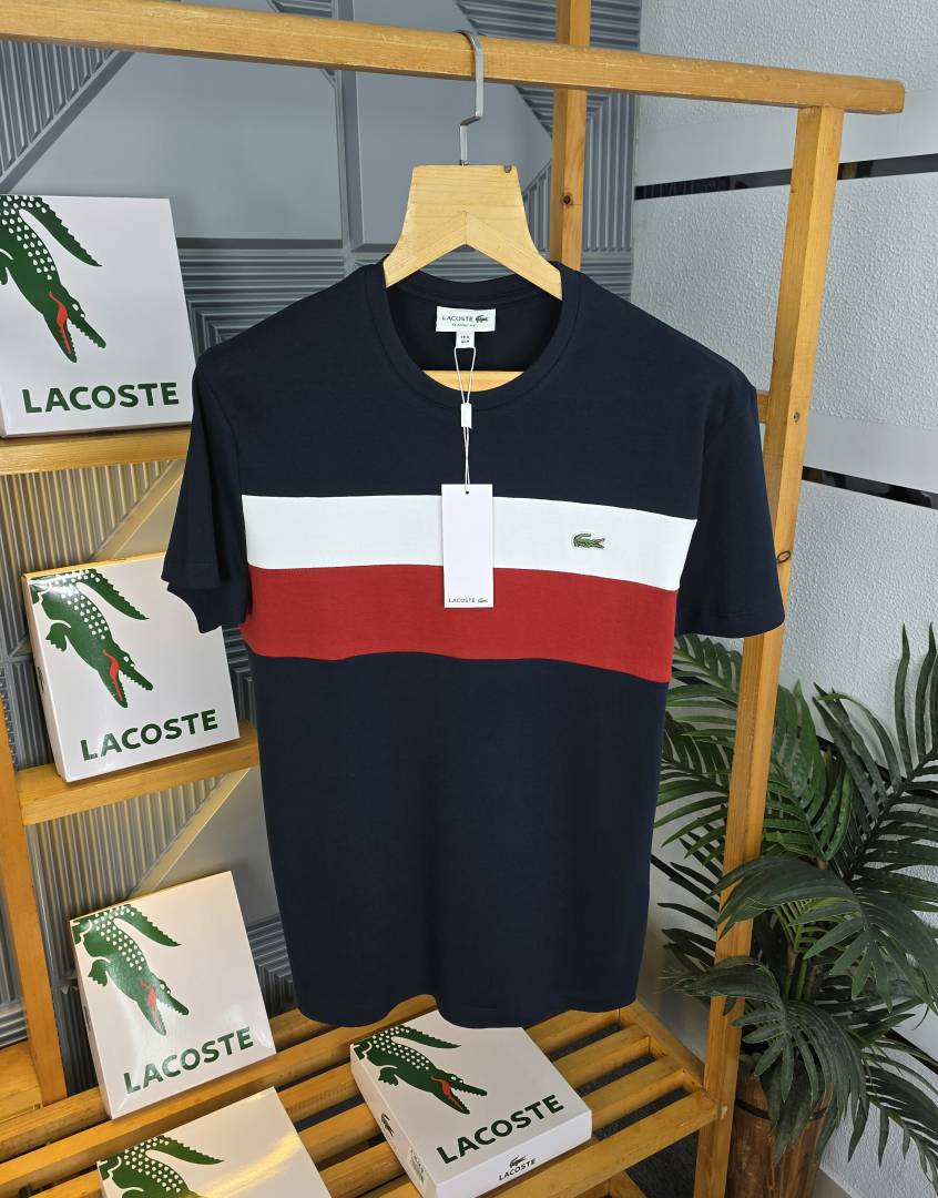 SALE Lacost_e Navy Blue Round Neck Premium Tshirt 441