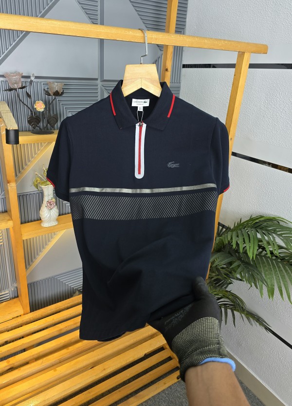 Lacost_e Blue Multi Premium Polo Neck Tshirt 482