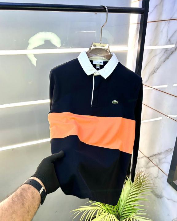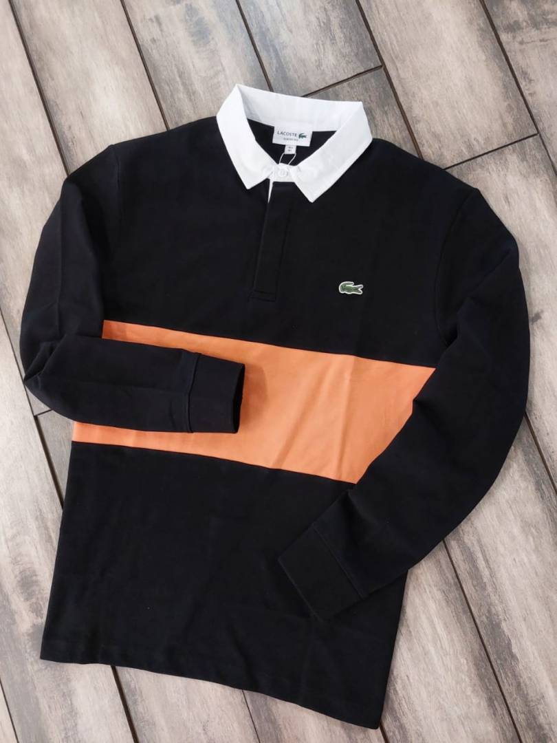 Lacost e Black Polo Neck Full Sleeves Premium Collar T-shirt F3235-B2
