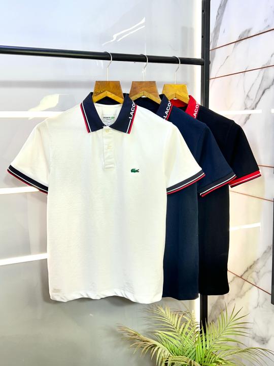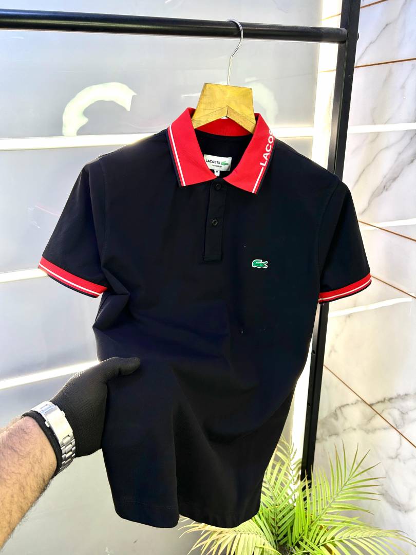 Lacost e Black Polo Premium Collar Neck T-shirt F2900-BL