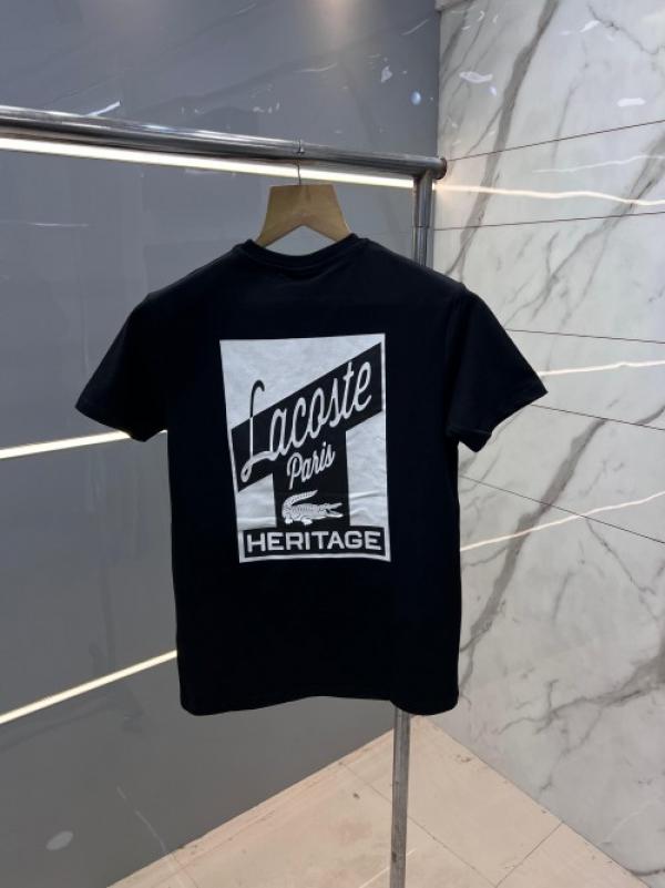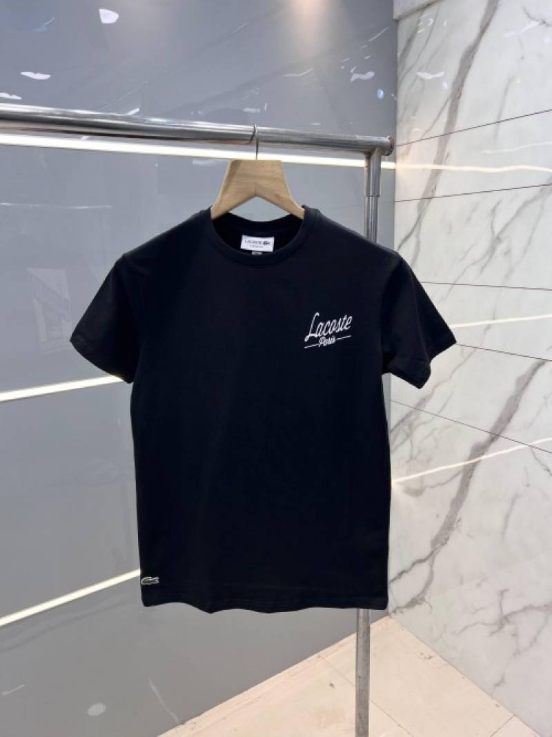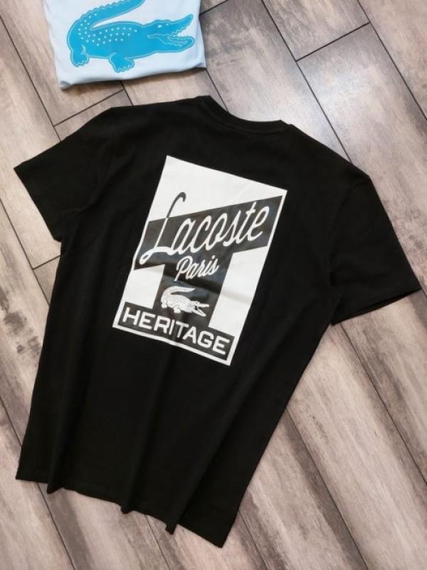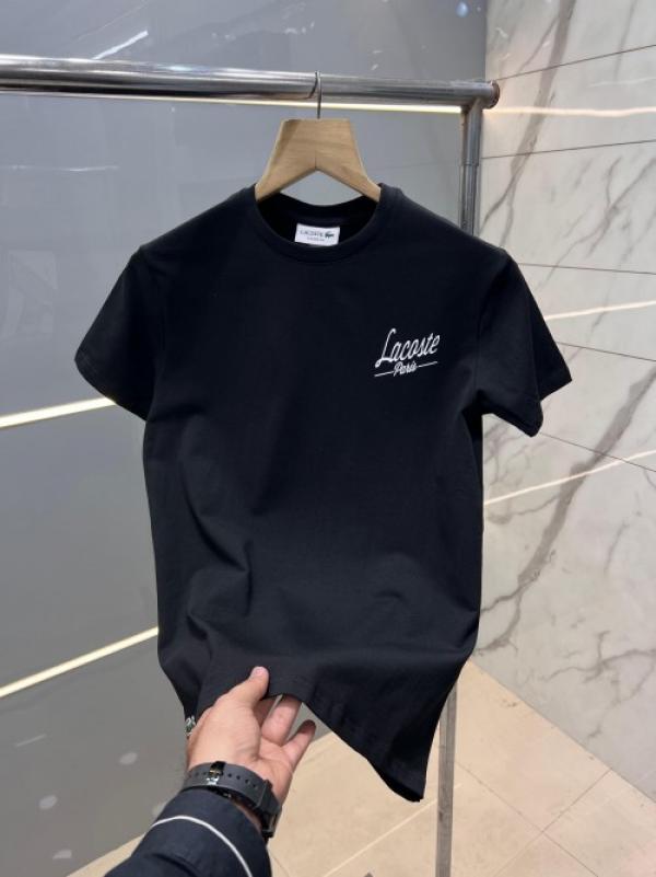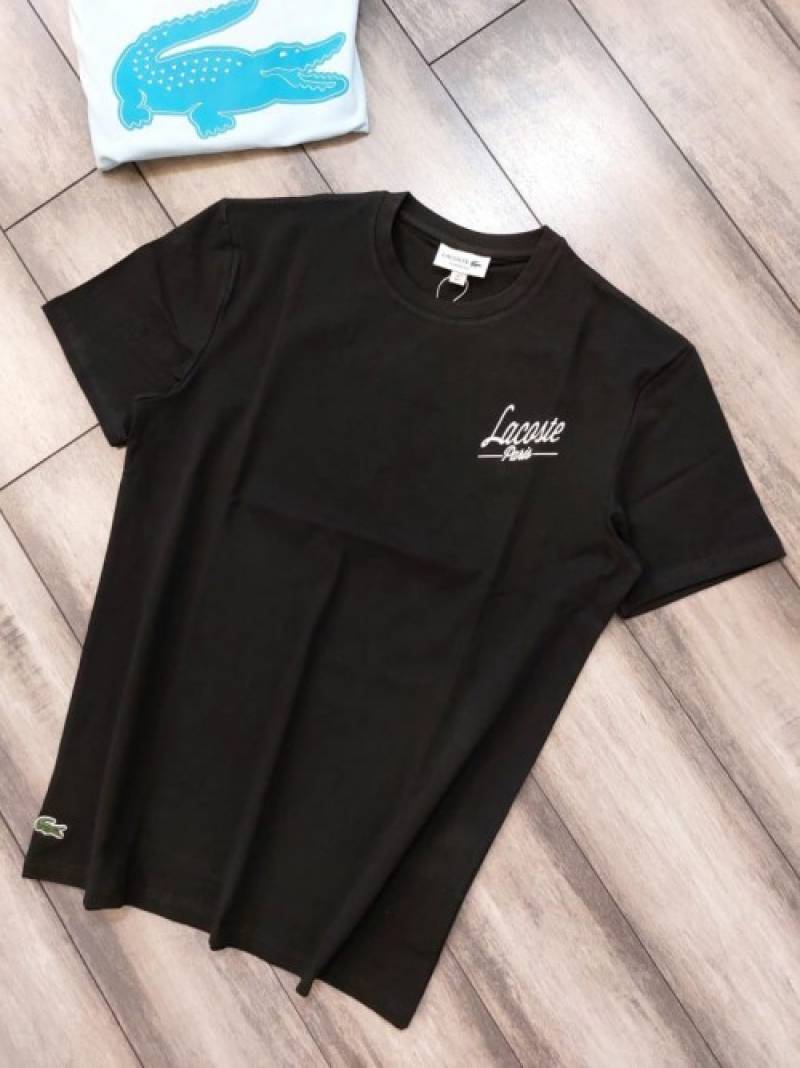 Lacost e Black Premium Imported 200 GSM Interlock Lycra Fabric Round Neck Front and Back Printed Logo Tshirt 2660