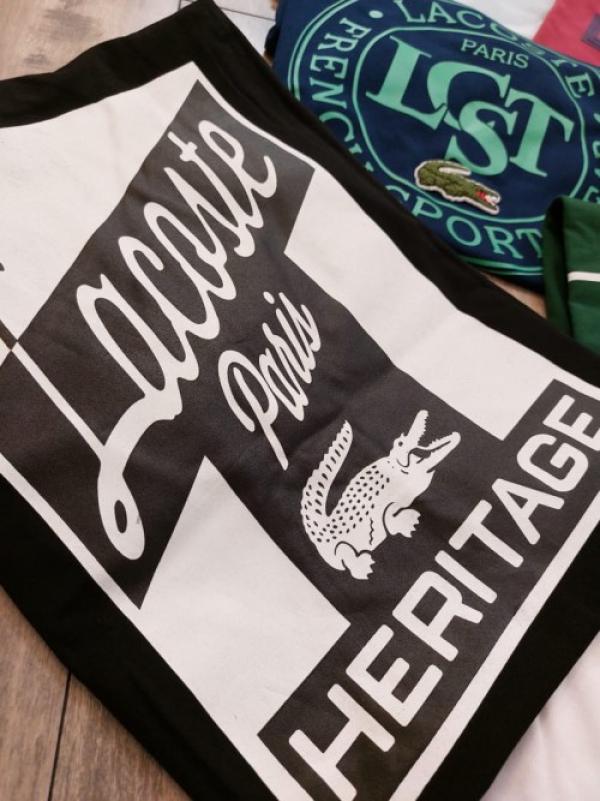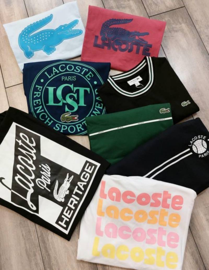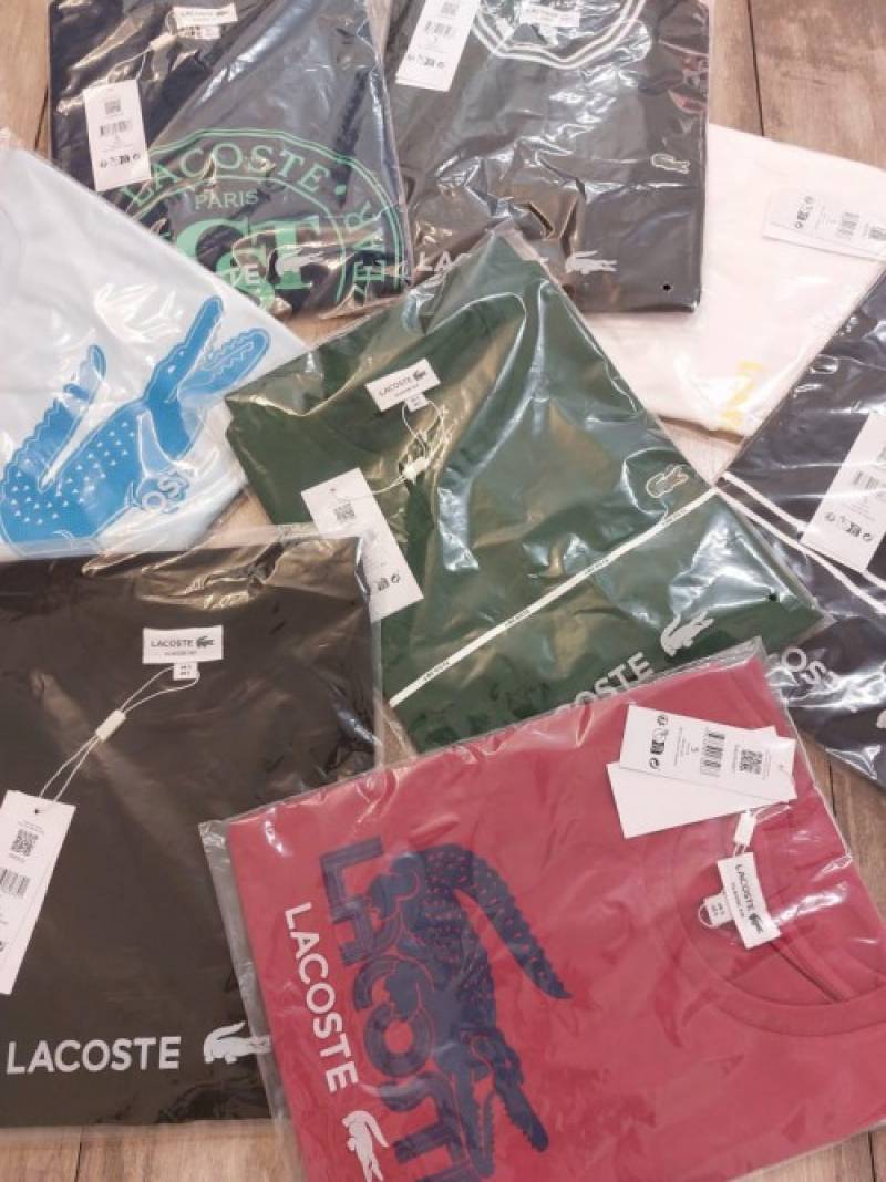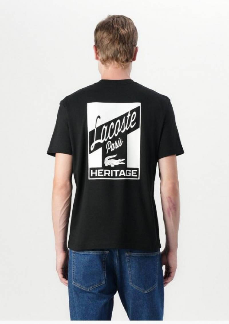 Lacost e Black Premium Imported 200 GSM Interlock Lycra Fabric Round Neck Front and Back Printed Logo Tshirt 2660