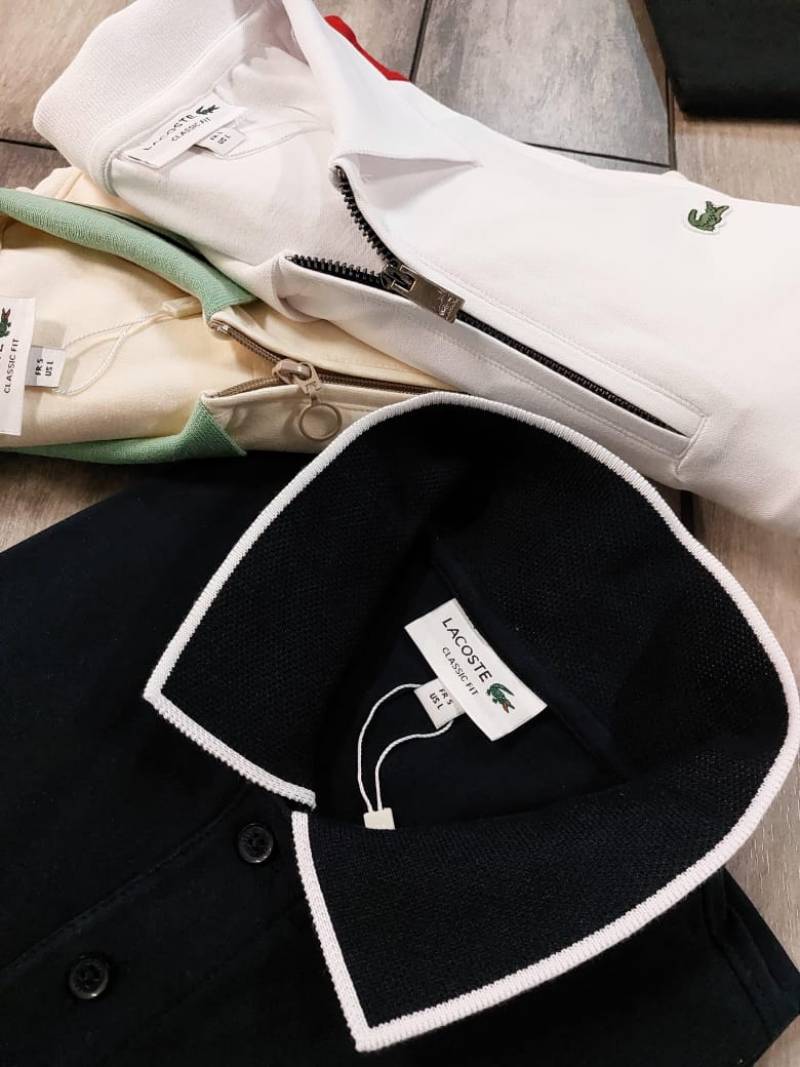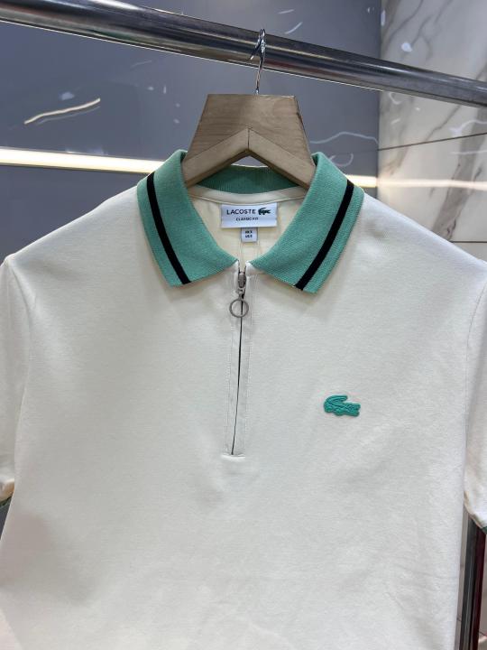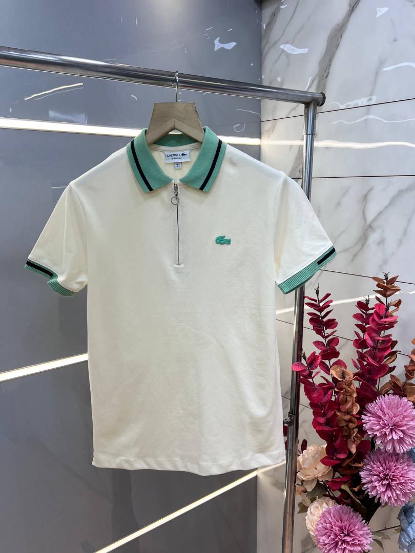 Lacost e Cream Premium Cotton Lycra Pique fabric Polo Tshirt with Collar Design and Embroidered Logo Zip Style 3387