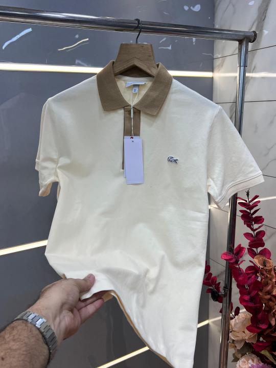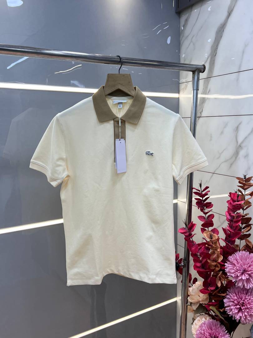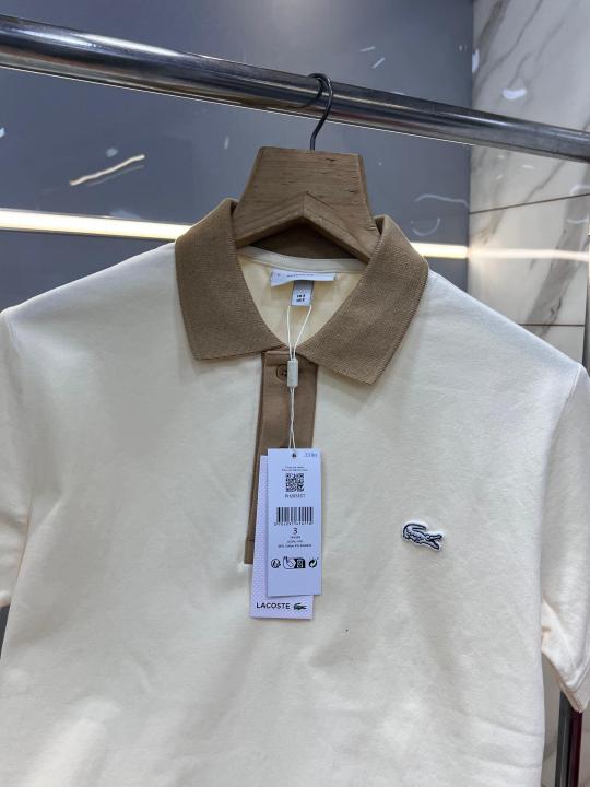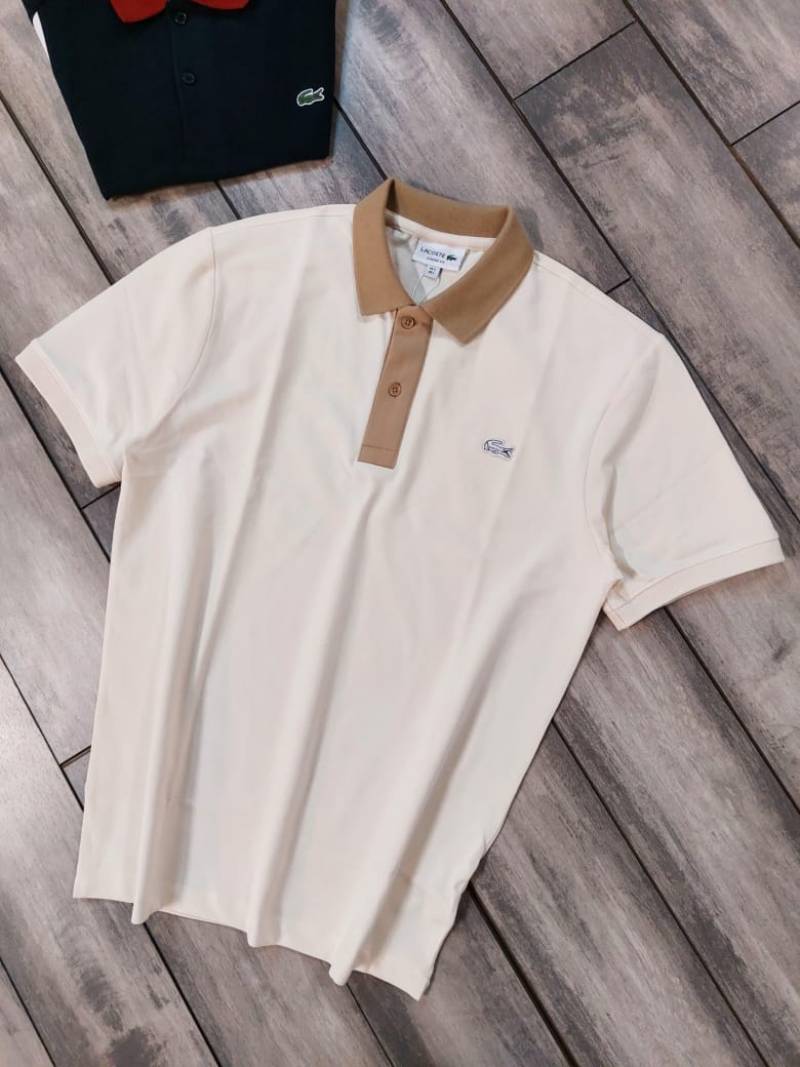 Lacost e Cream Premium Cotton Lycra Pique fabric Polo Tshirt with Front Design and Embroidered Logo 3389