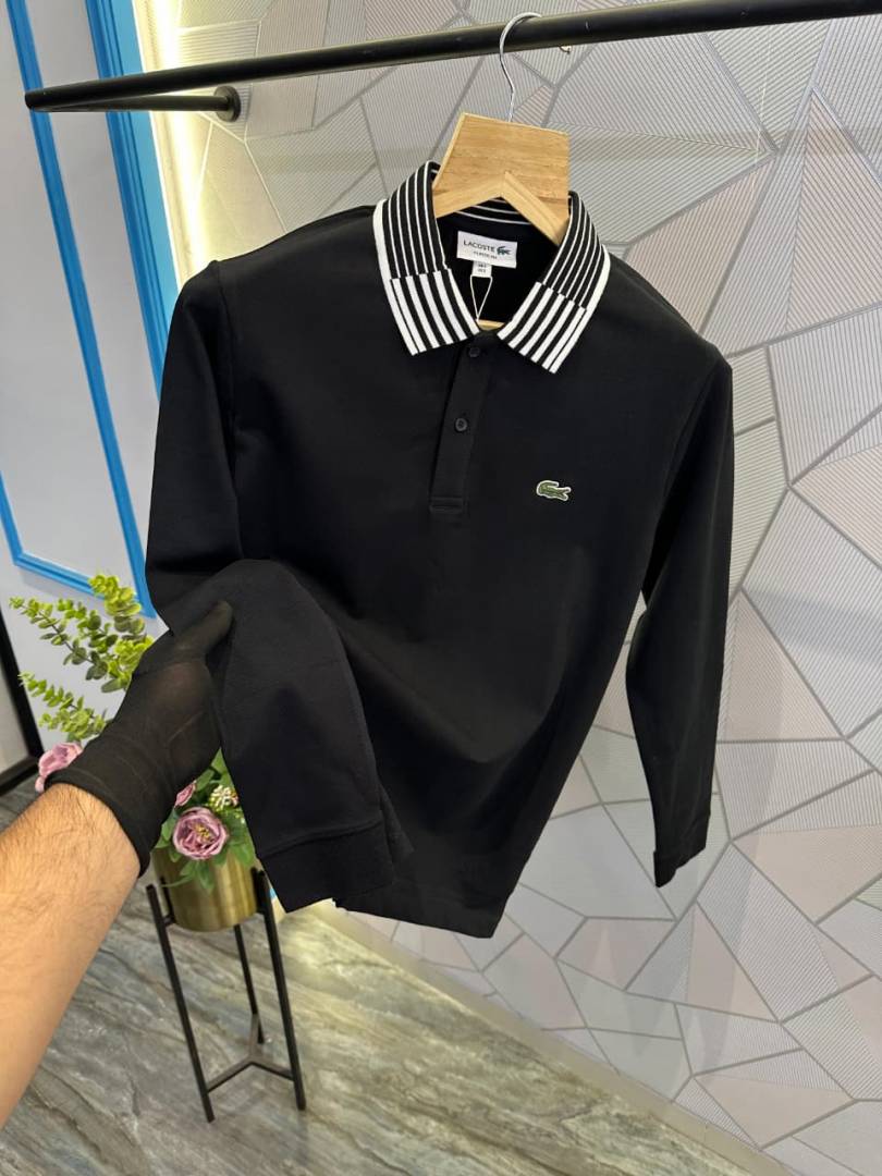 Lacost e Beige Premium Cotton Lycra Pique fabric Polo Full Sleeves Tshirt with Embroidered Logo 3294