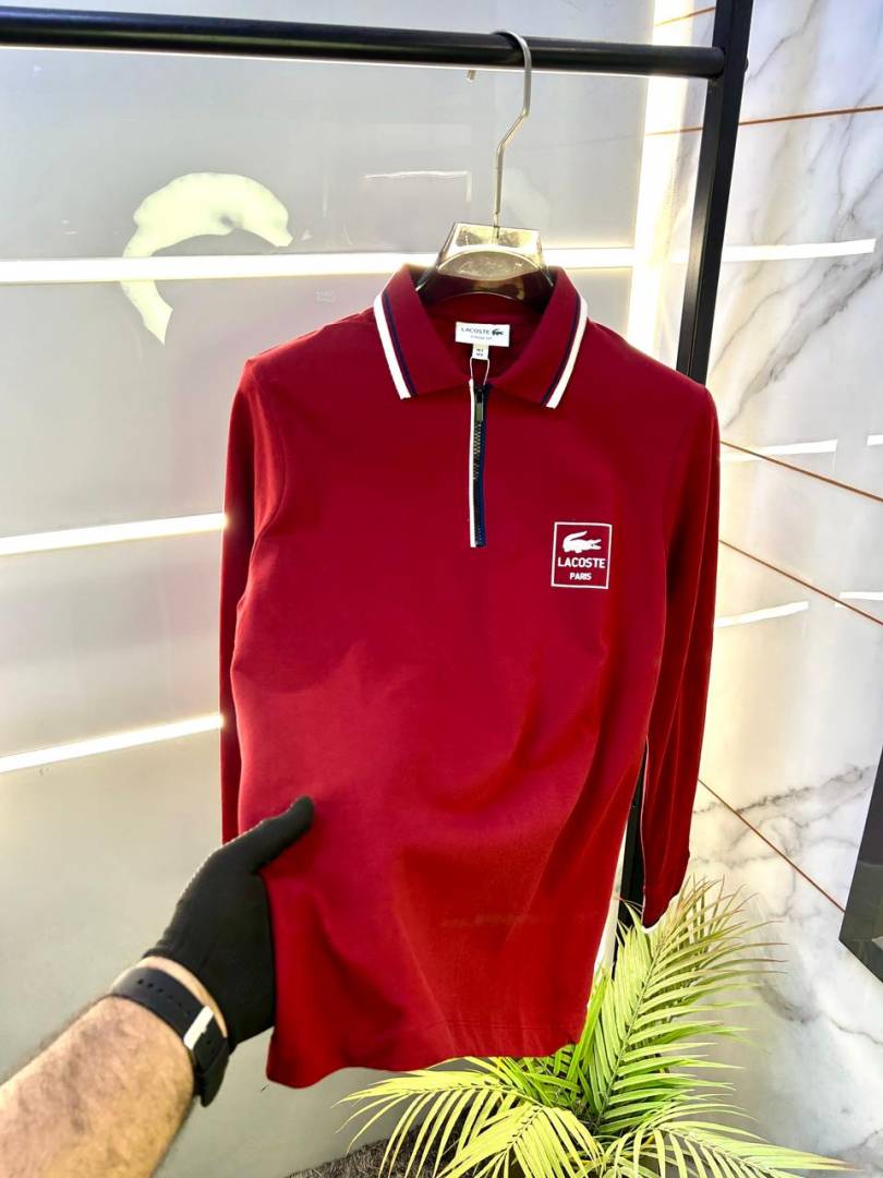 Lacost e Maroon Polo Neck Full Sleeves Premium Collar T-shirt F3235-MA