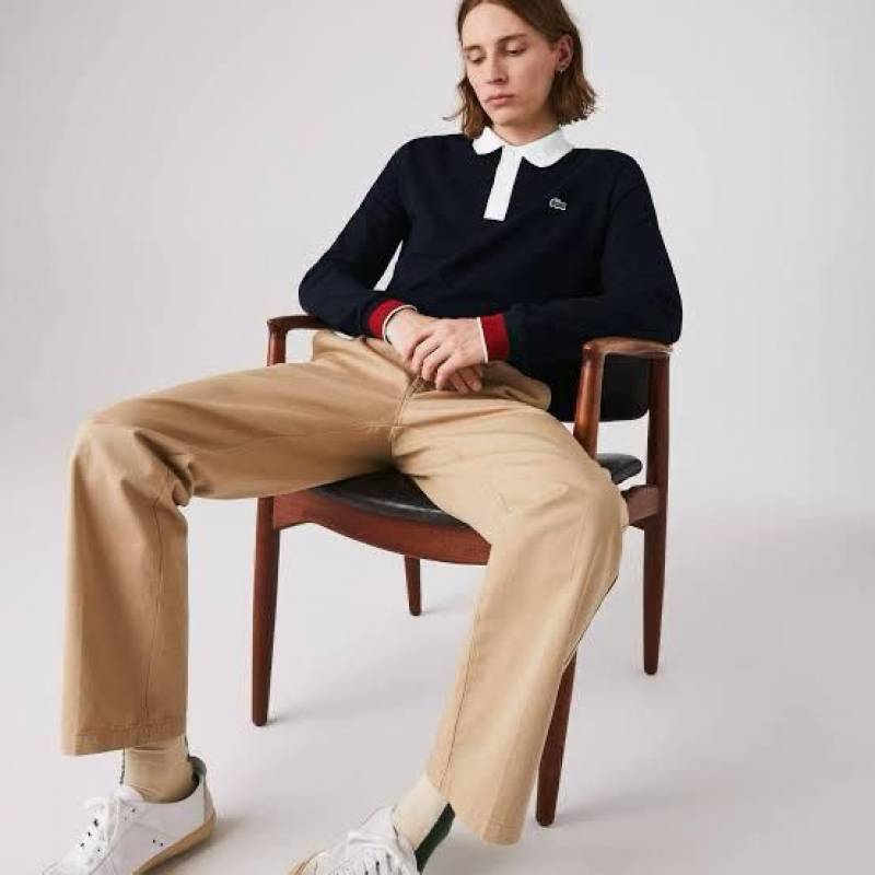 Lacost e Beige Premium Cotton Lycra Pique fabric Polo Full Sleeves Tshirt with Collar Design and Patch Logo 3292