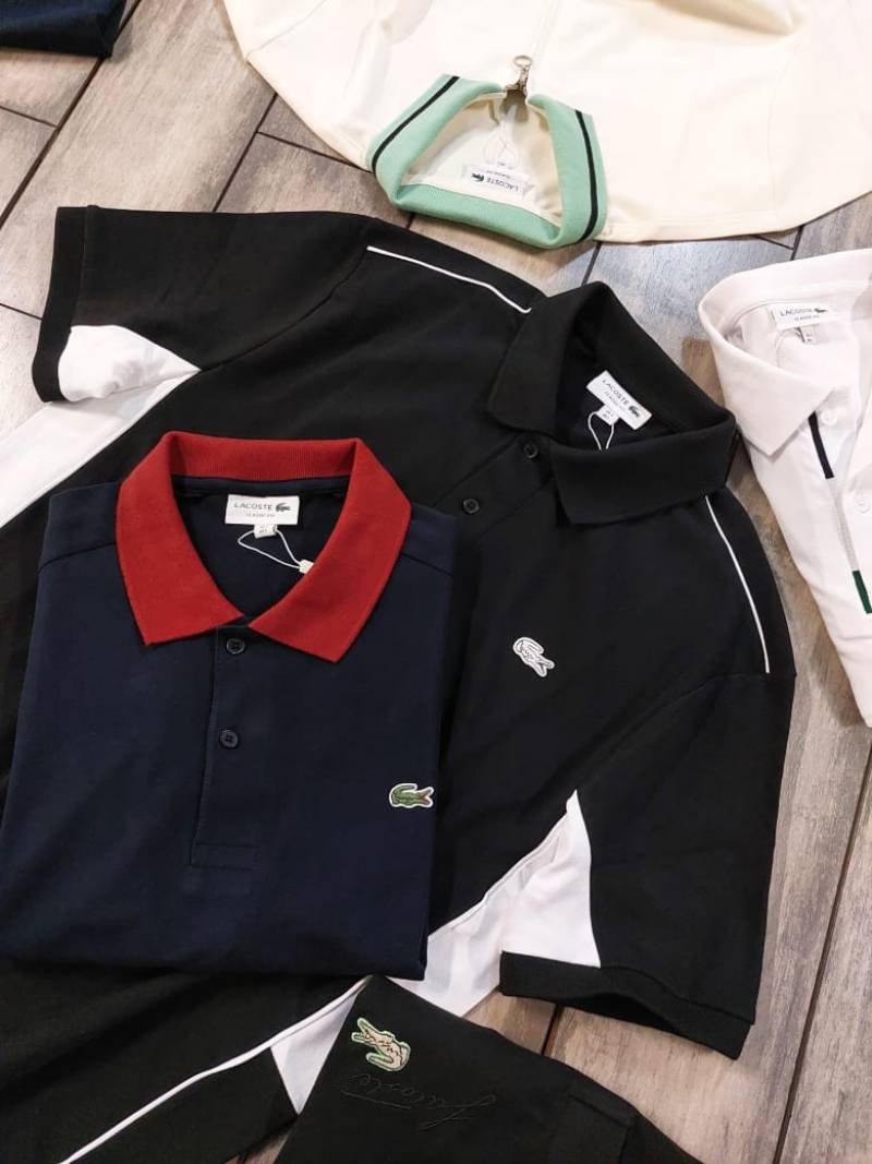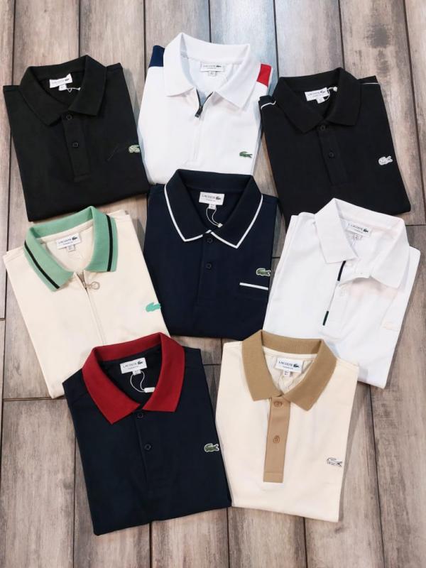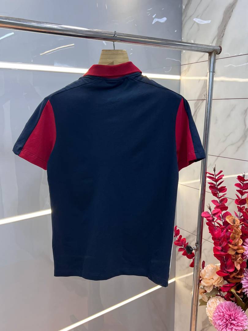 Lacost e Navy Premium Cotton Lycra Pique fabric Polo Tshirt with Front Design and Embroidered Logo 3390