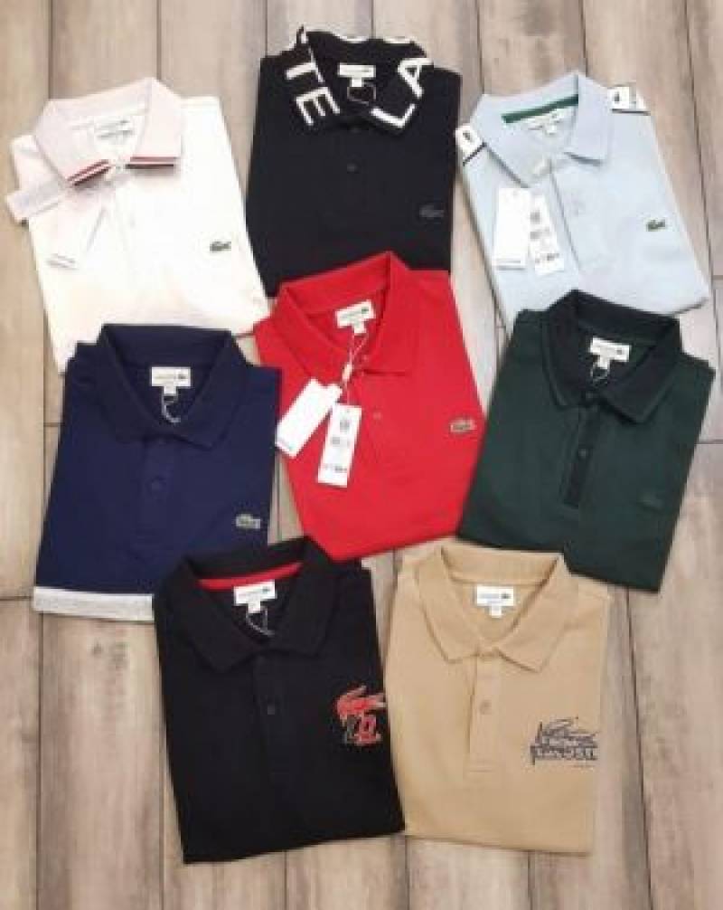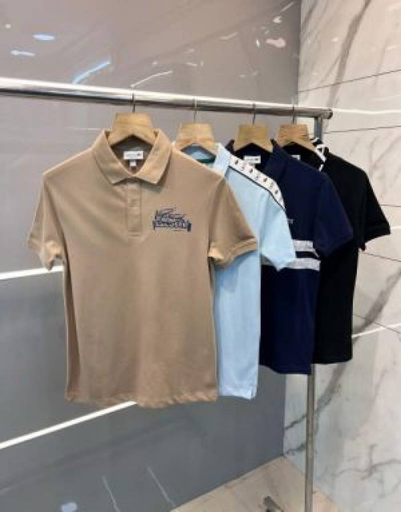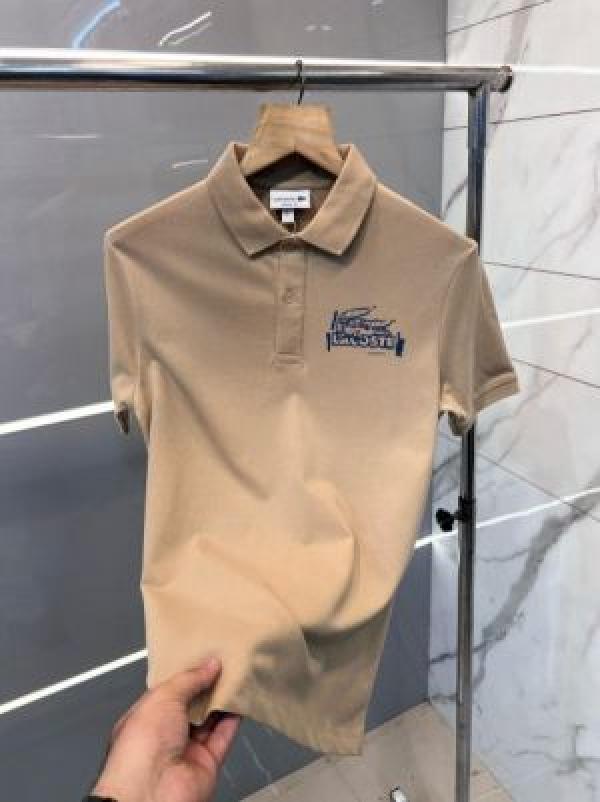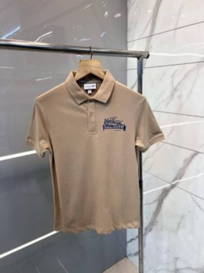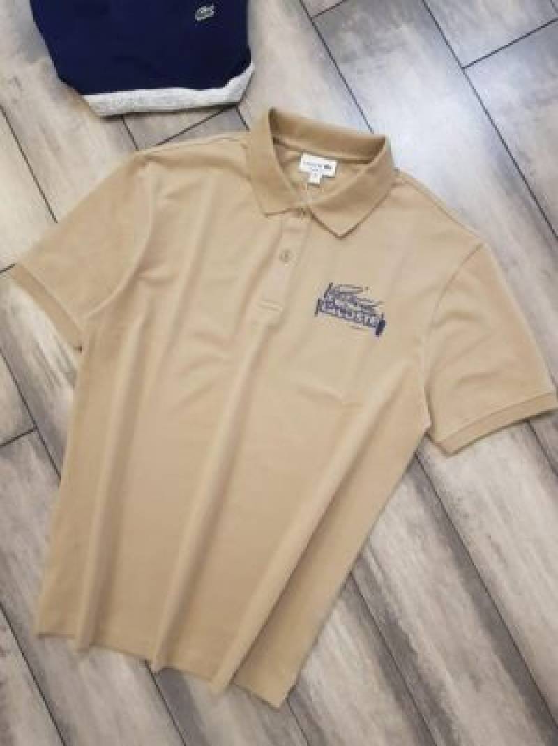 Lacost e Premium Imported Polo T shirt With 240 gsm interlock cotton lycra fabric and Emboss Branded Logo Beige 2174