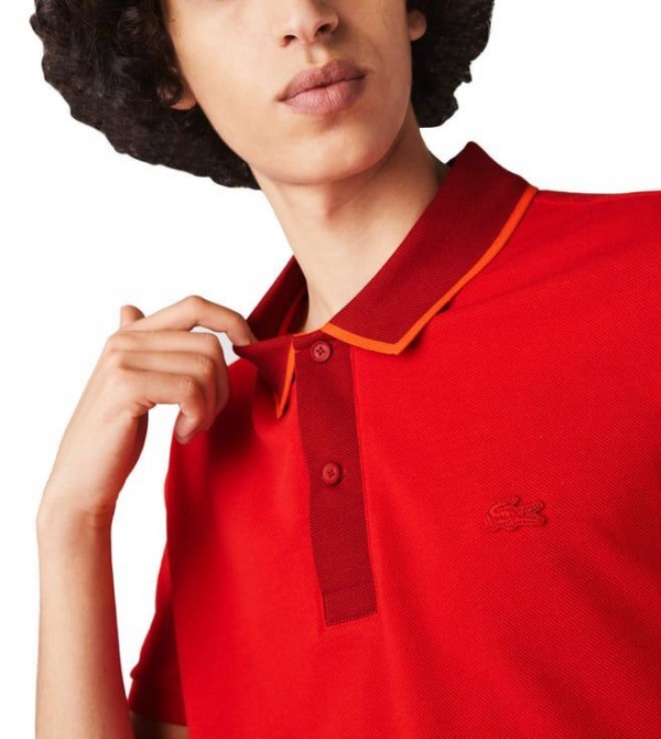 Sale Lacost e Red Collar Neck Premium Polo T-shirt F2376-RE