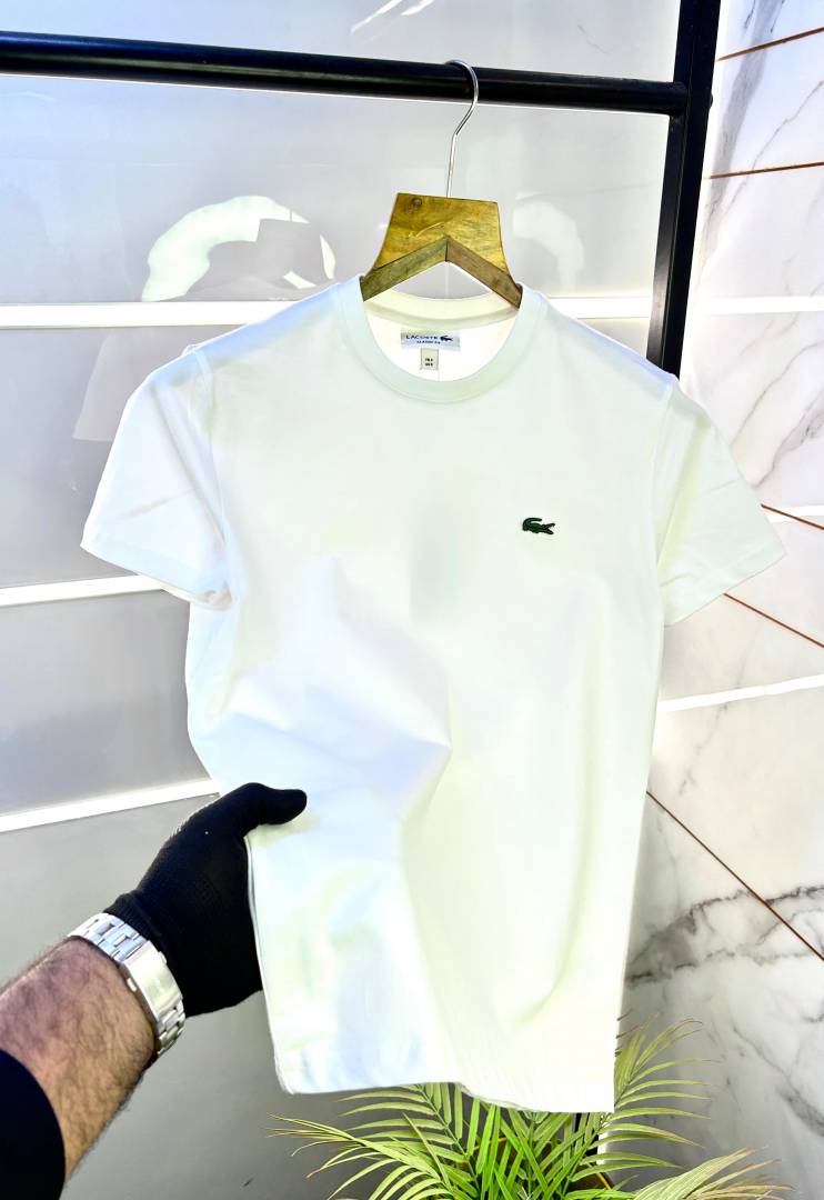 Lacost e White Embroidery Logo Round Neck Premium T-shirt F2995-WH