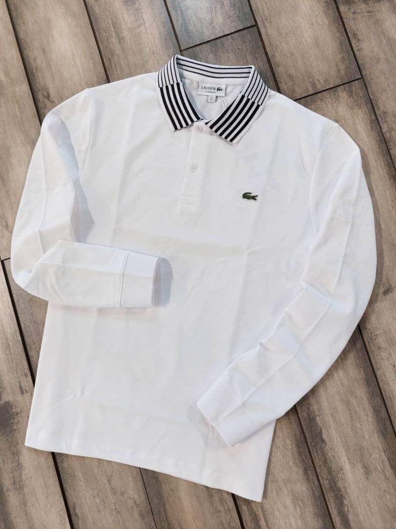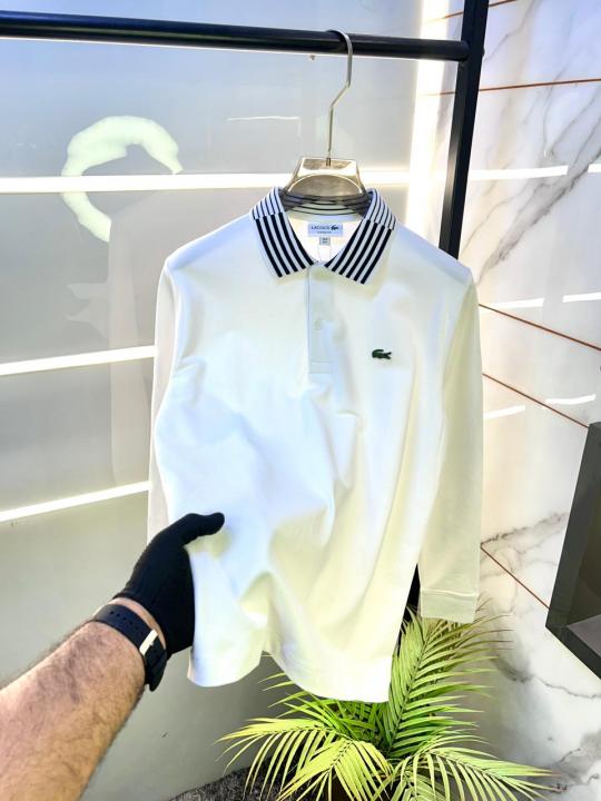 Lacost e White Polo Neck Full Sleeves Premium Collar T-shirt F3235-W1