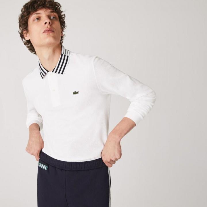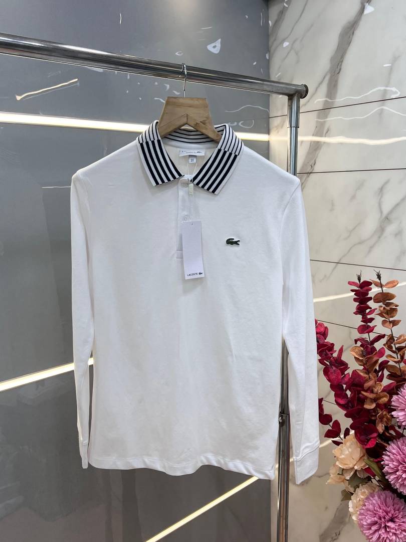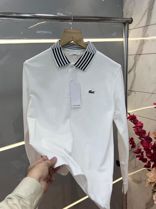 Lacost e White Premium Cotton Lycra Pique fabric Polo Full Sleeves Tshirt with Collar Design and Embroidered Logo 3295