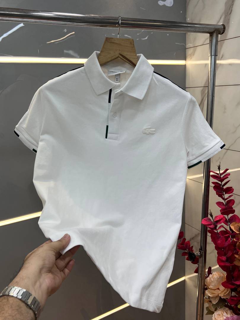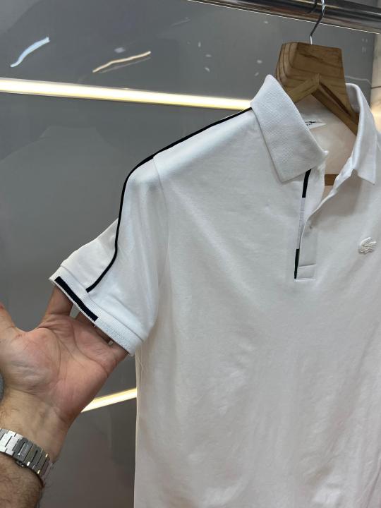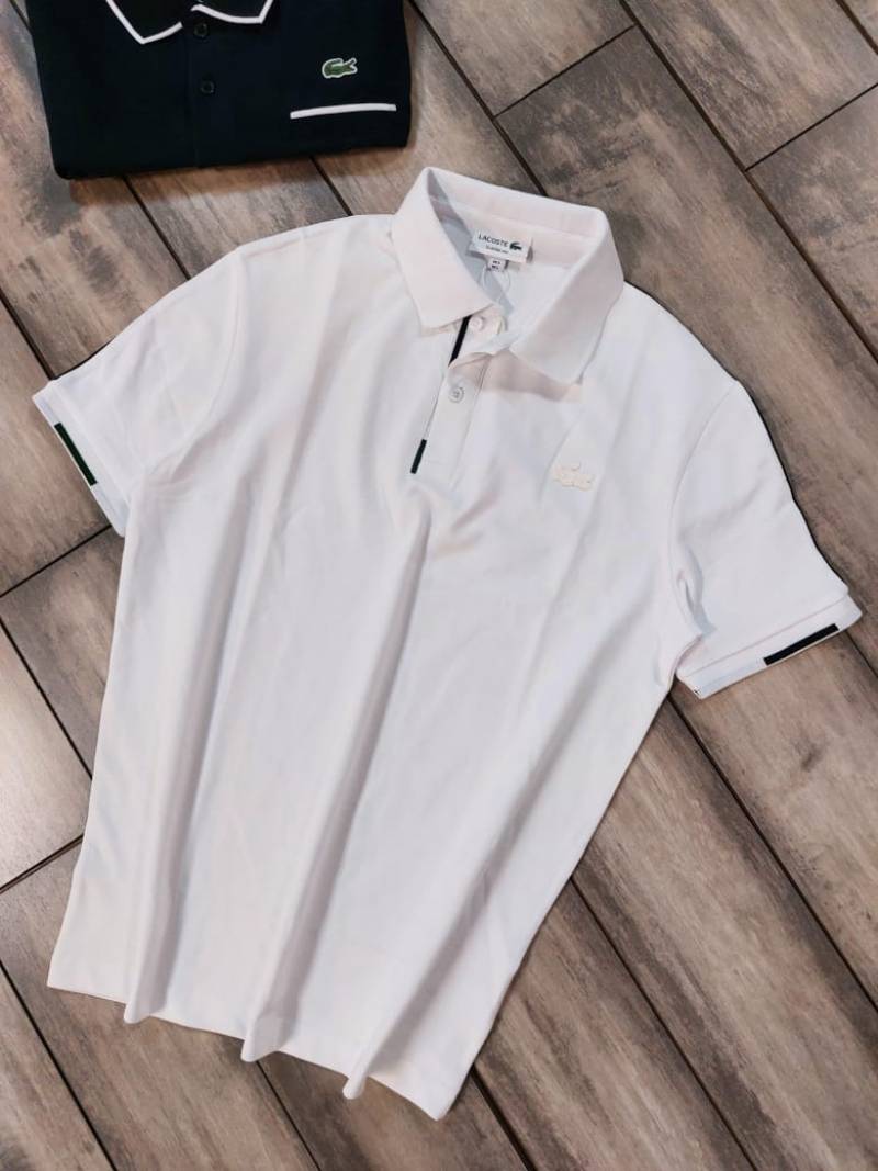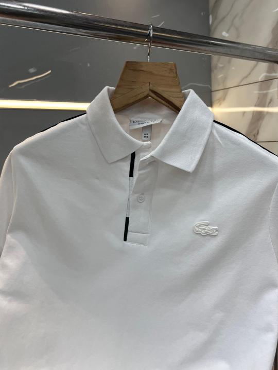 Lacost e White Premium Cotton Lycra Pique fabric Polo Tshirt with Front Design and Embroidered Logo 3385