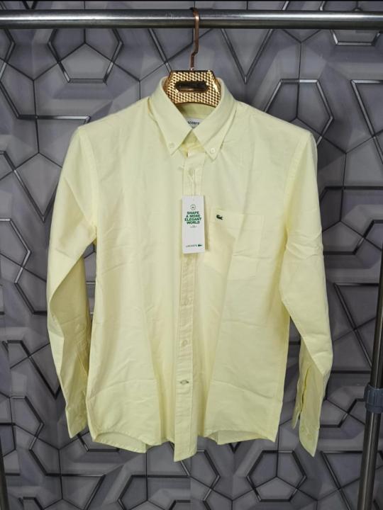 Sale_Lacoste_Yellow_Pocket_Embroidery_Logo_Premium_Oxford_Shirt_(1792)