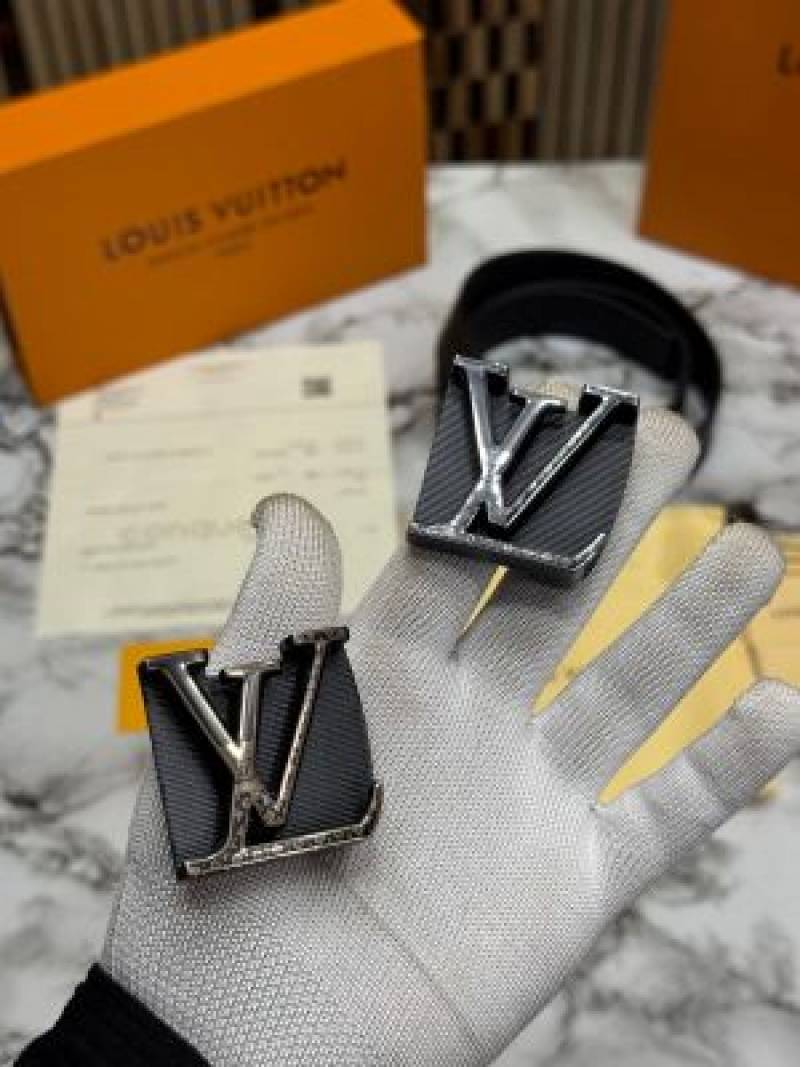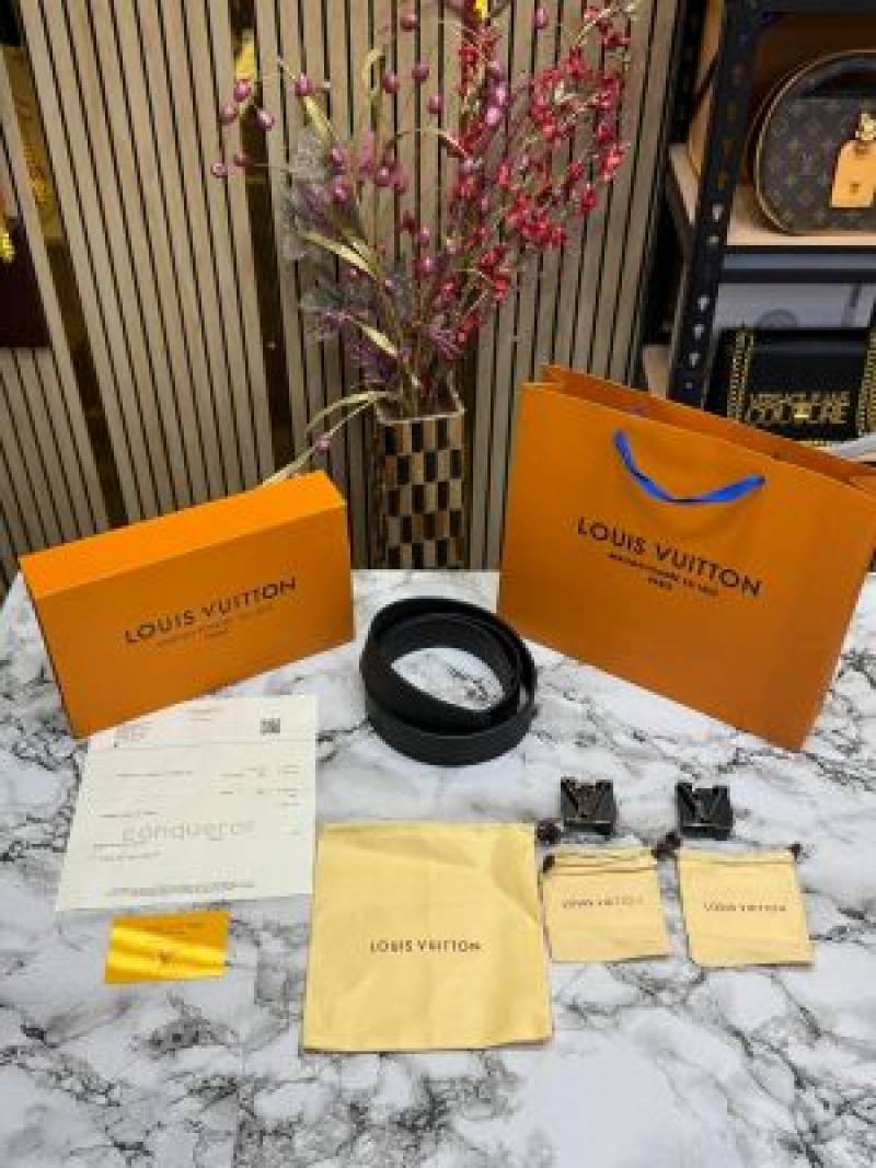 Louis_Vuitton Black Leather Belt with Silver LV Initiales Buckle Includes Box Dust Bag And Carry Bag (7G)