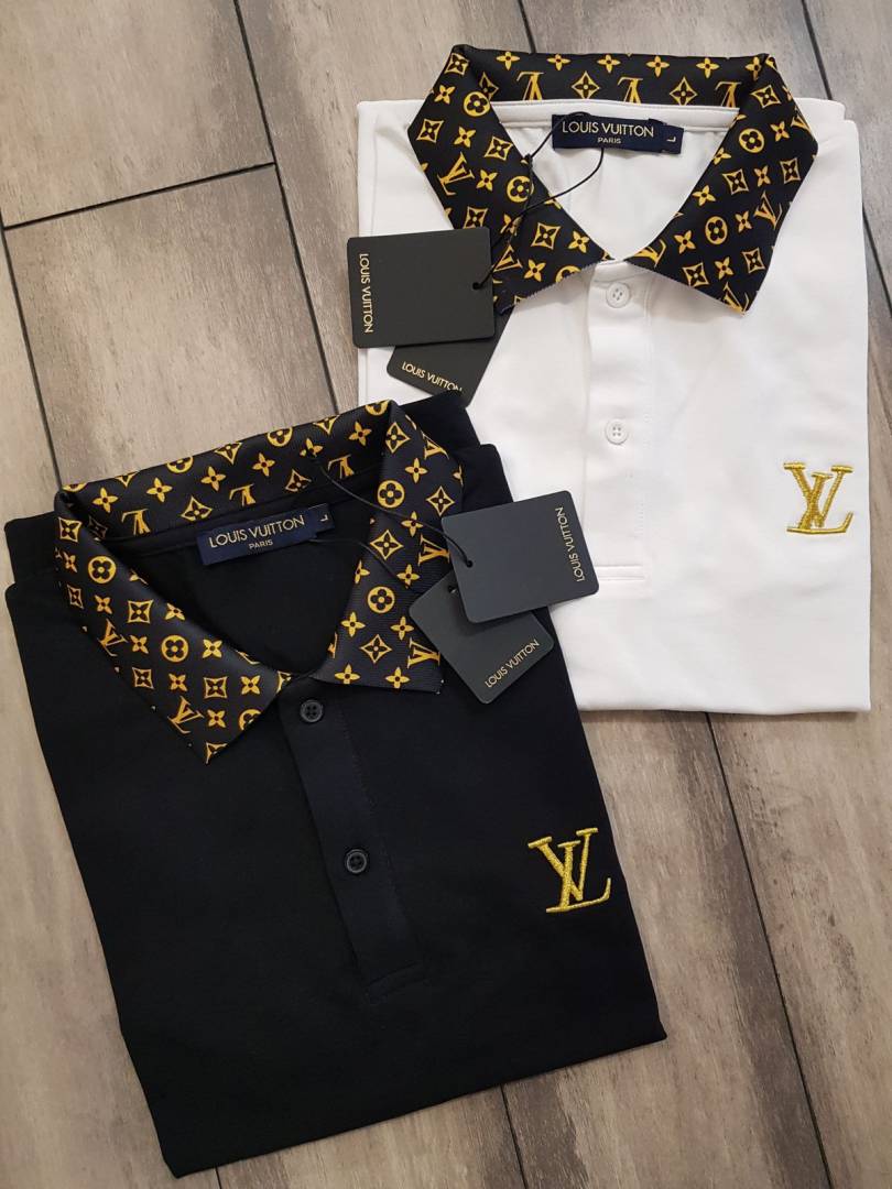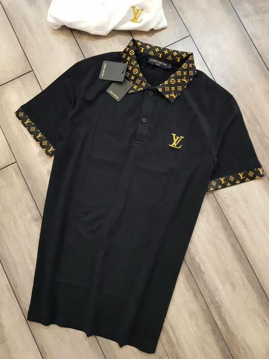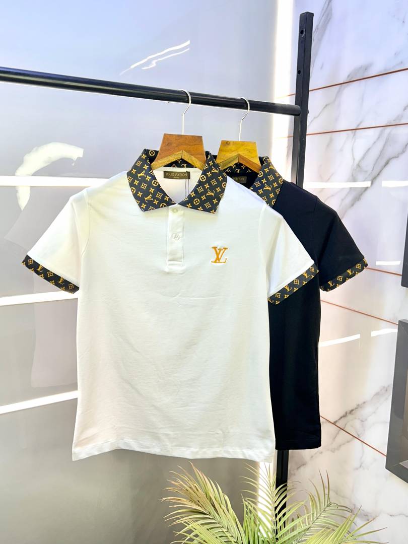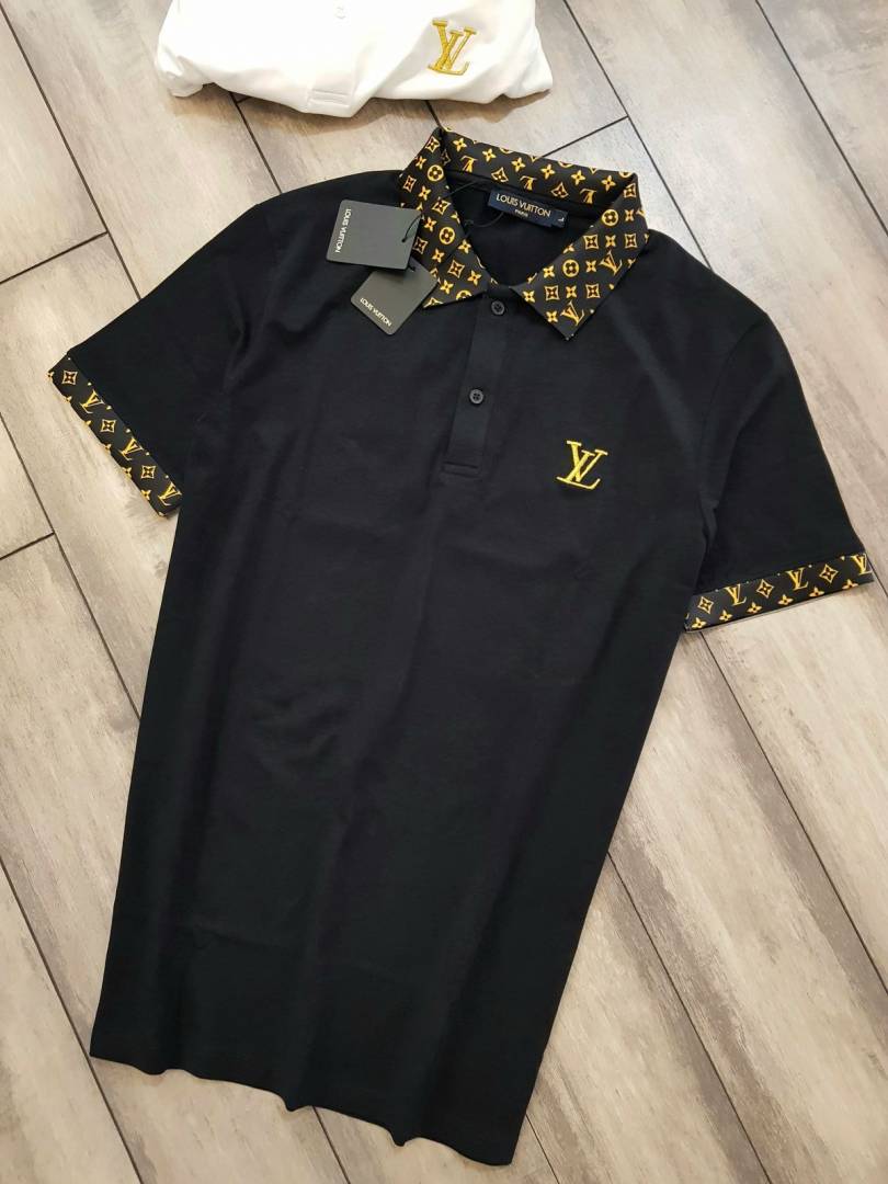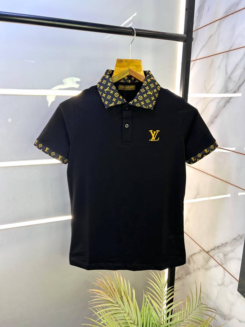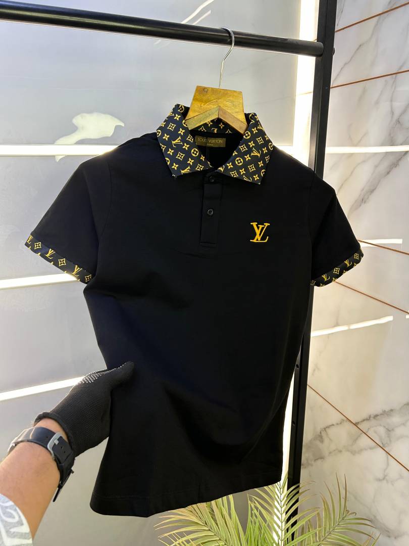 Louis_Vuitton Imported Embroidery Logo Collar Neck Black Polo T-shirt F1193-BL