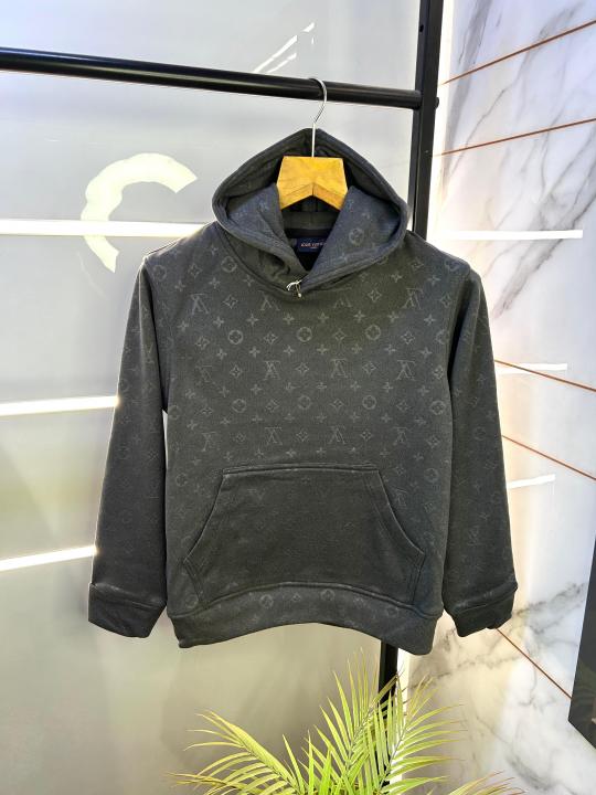 Louis_Vuitton Imported Monogram Print Dark Grey Super Premium Hoodie F1122-GY