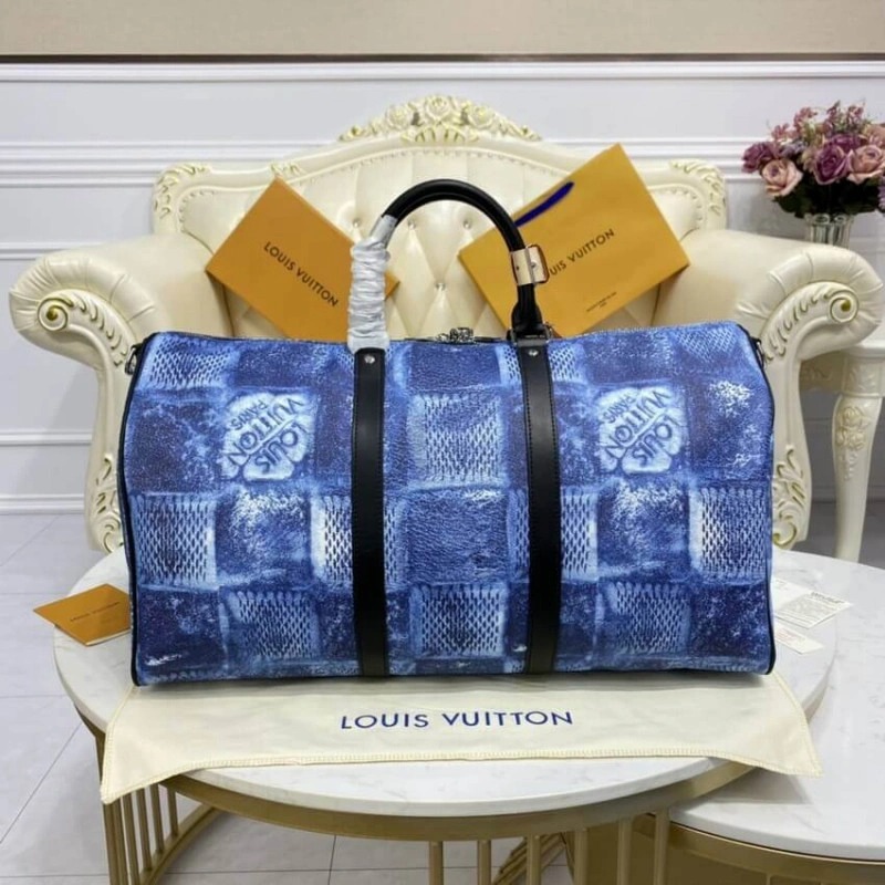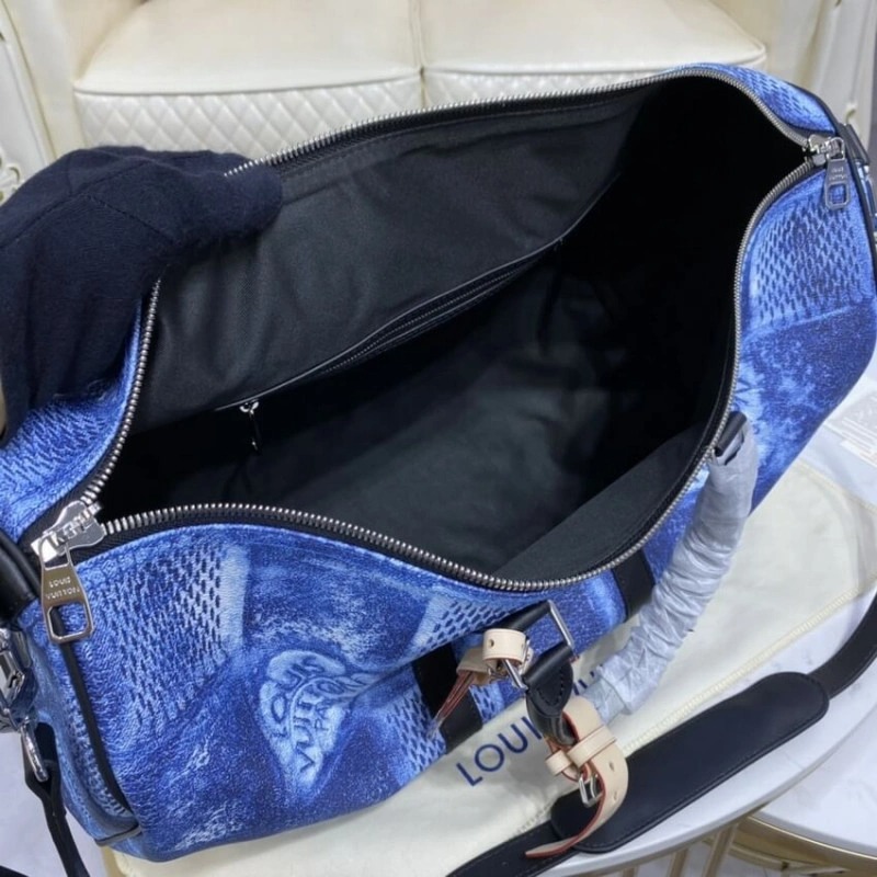Louis_Vuitton_LV Damier Keepall Bandoulire Limited Edition Premium Unisex Duffle Bag With Dust Bag & Accessories (Ocean Blue - 683)
