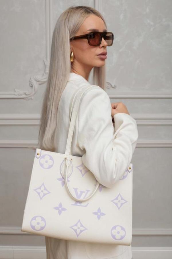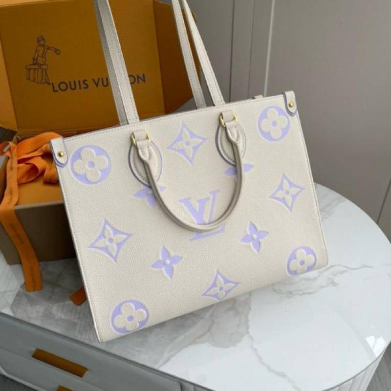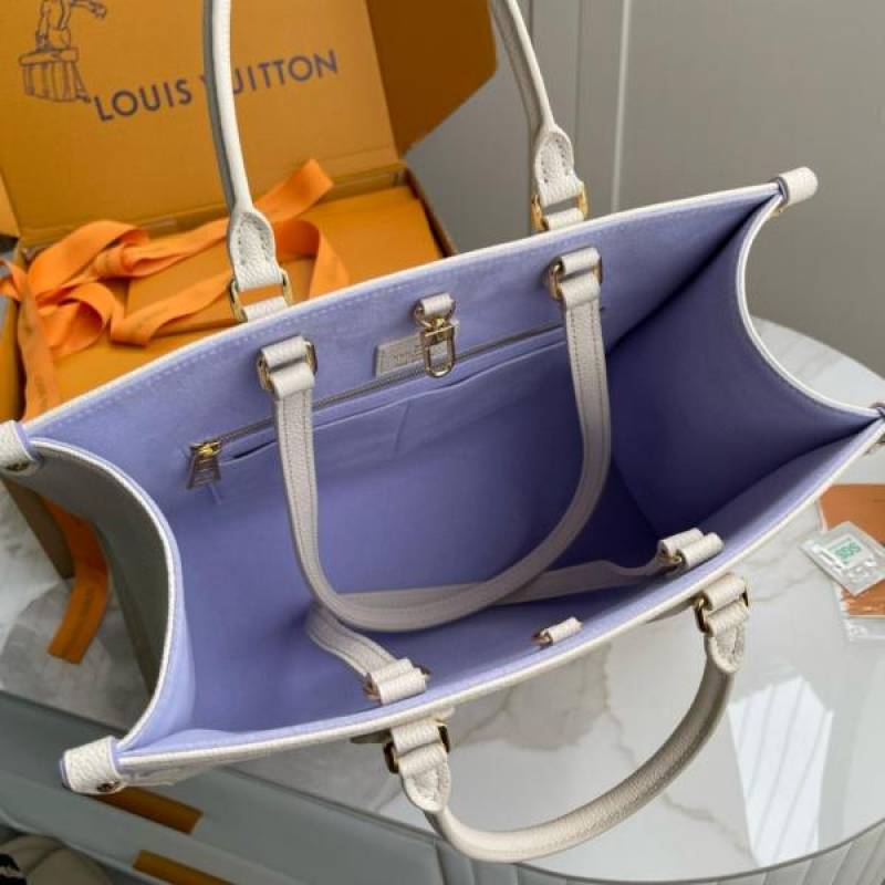 Louis_Vuitton_LV M23937 On The Go Monogram Premium Leather Tote Bag With Dust Bag (White Purple - 958)