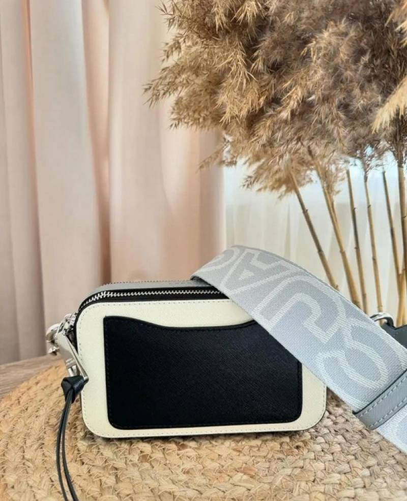 Marc Jacobs Snapshot Crossbody Bag With 2 Belts OG Box & Dust Bag (White Black - 835)