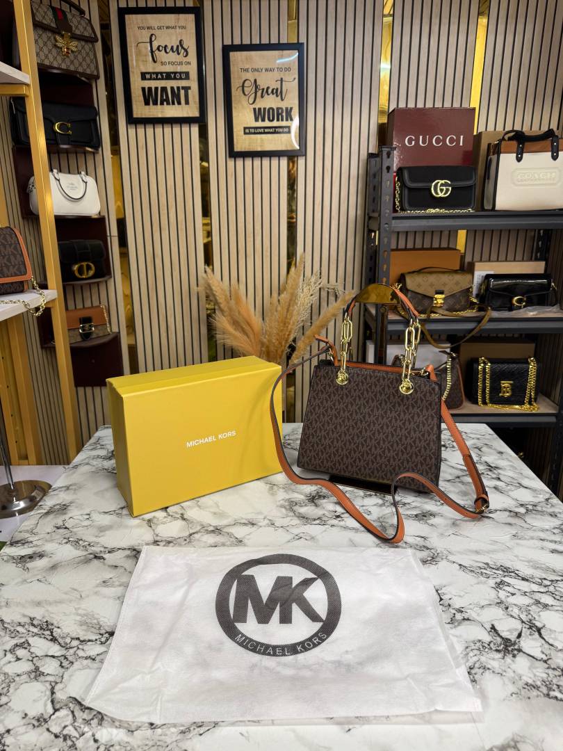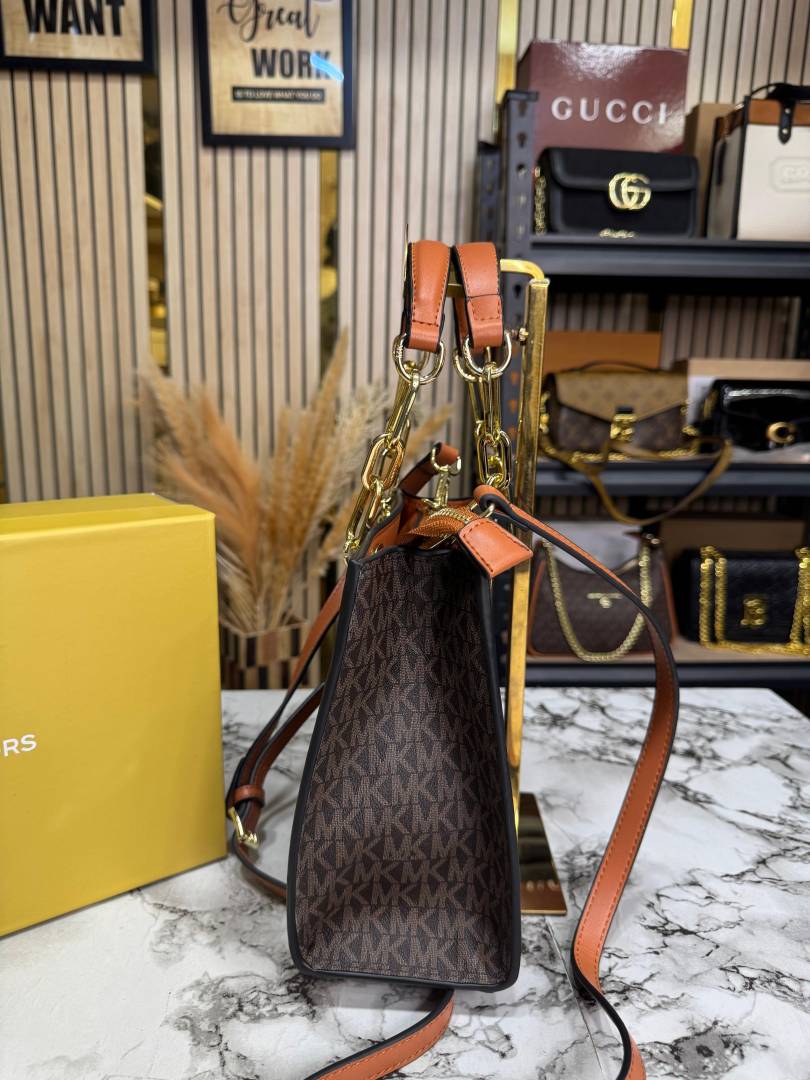 Michael_Kors Cynthia Signature Logo Satchel Bag With Box And Dust Bag (Brown)