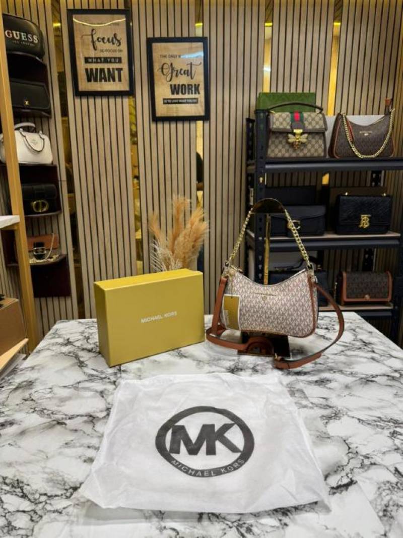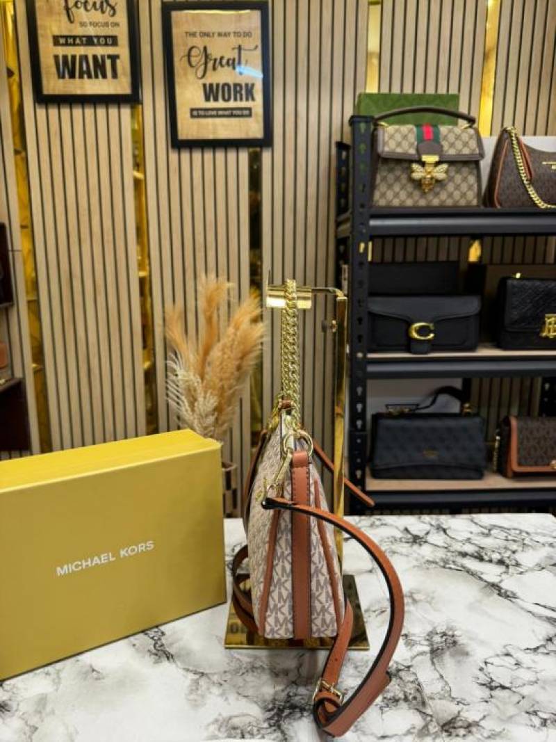 Michael_Kors Jet Set Charm Logo Sling Bag With Box And Dust Bag (4018-Beige)
