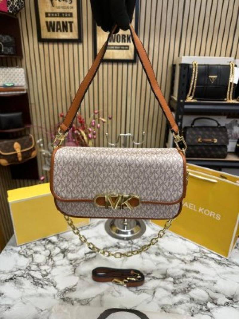 MICHAEL_KORS MK PARKER LEATHER SHOULDER BAG WITH OG BOX AND DUST BAG WITH SHOULDER STRAP WITH CARRY BAG (BIEGE BROWN)