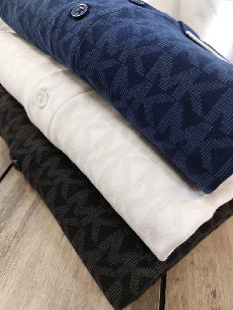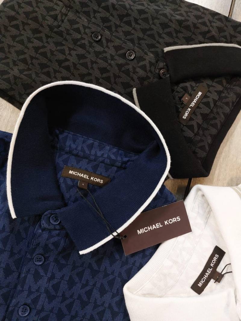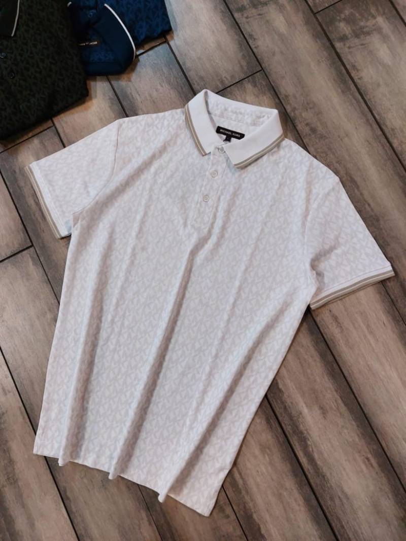 Michael_Kors Monogram Print White Polo Premium Collar neck T-shirt F3236-WH
