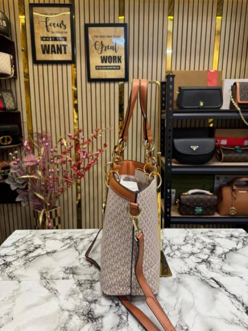 Michael_Kors Raven Large Logo Tote Bag With Dust Bag (Beige Brown)