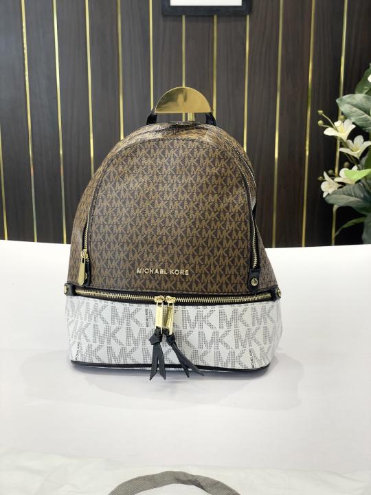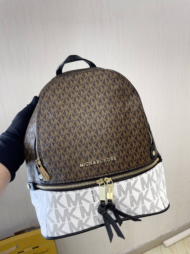Michael_kors Rhea backpack double zipper with dust bag(0089-1-coffe-black)