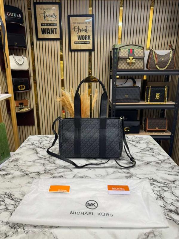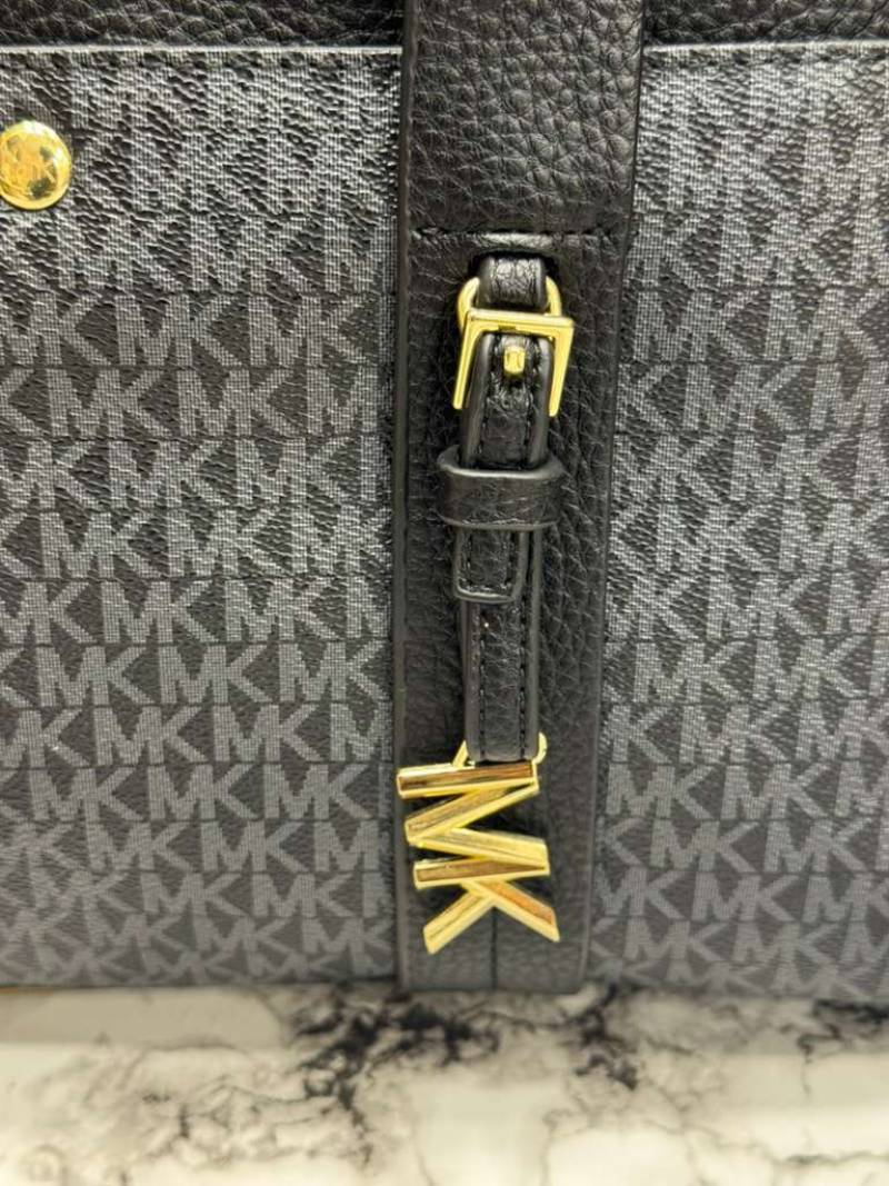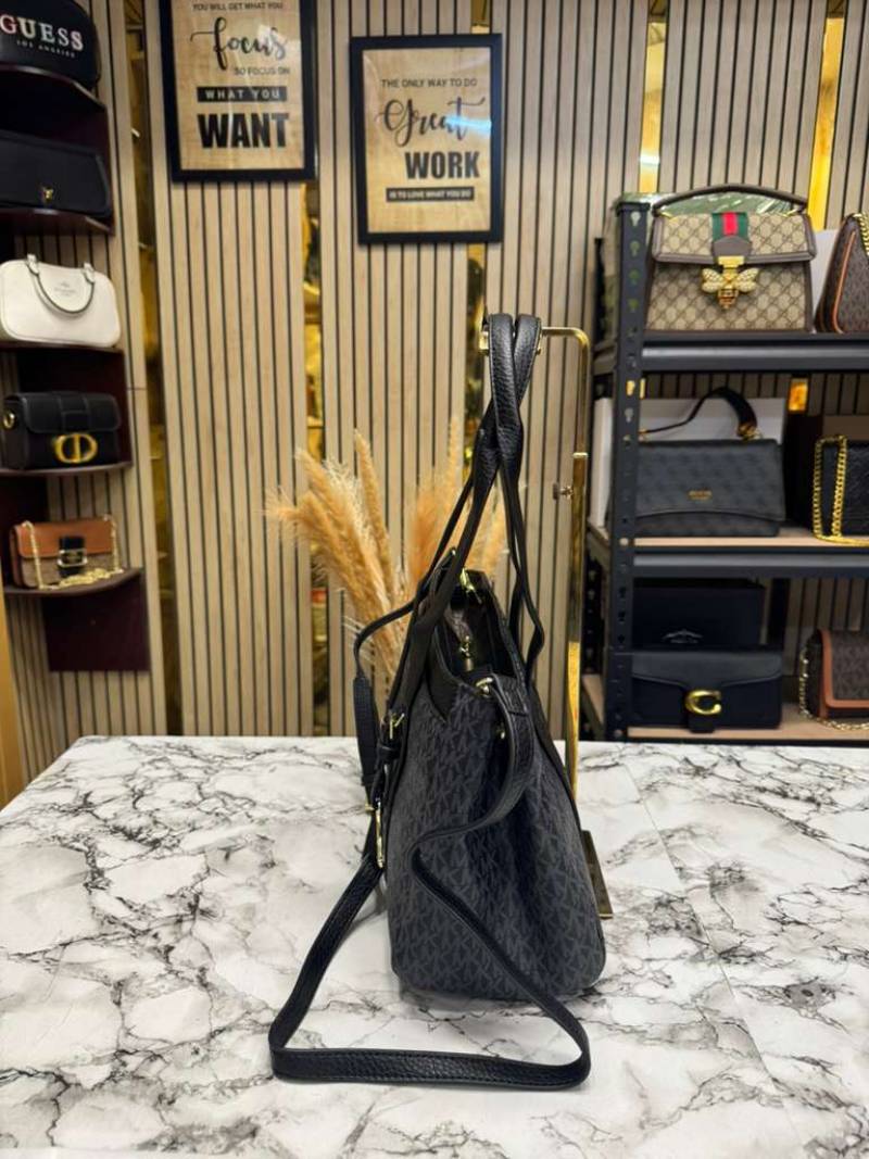 TOR_Y BURCH T MONOGRAM JACQUARD ADJUSTABLE STRAP WITH OG BOX DUST BAG BLACK DAMAGE BOX (NO RETURN)