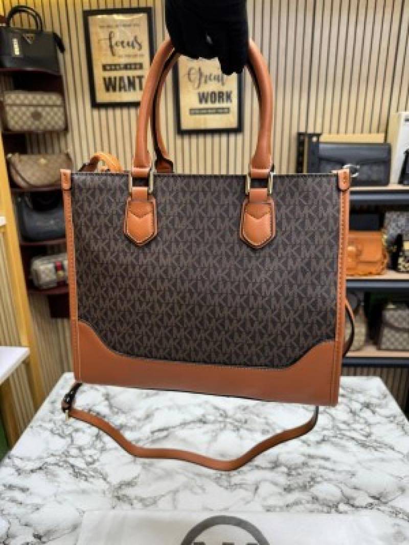 Michael_Kors Sheila Satchel Bag With Dust Bag (23015-Brown)