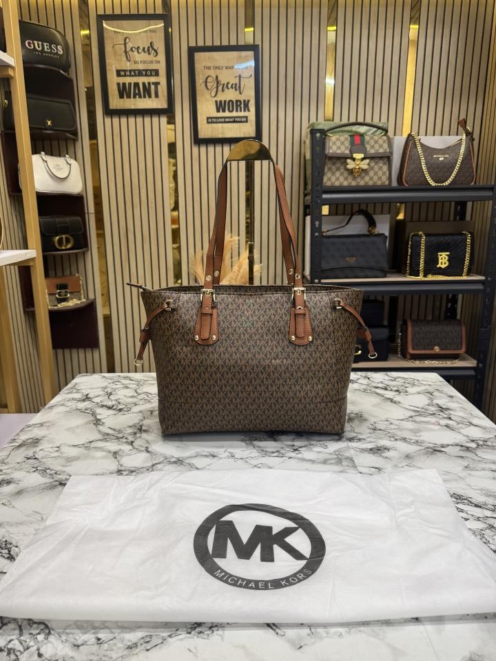MICHAEL_KORS JET SET LEATHER POUCHETTE WITH OG BOX AND DUST BAG (1930-BROWN)