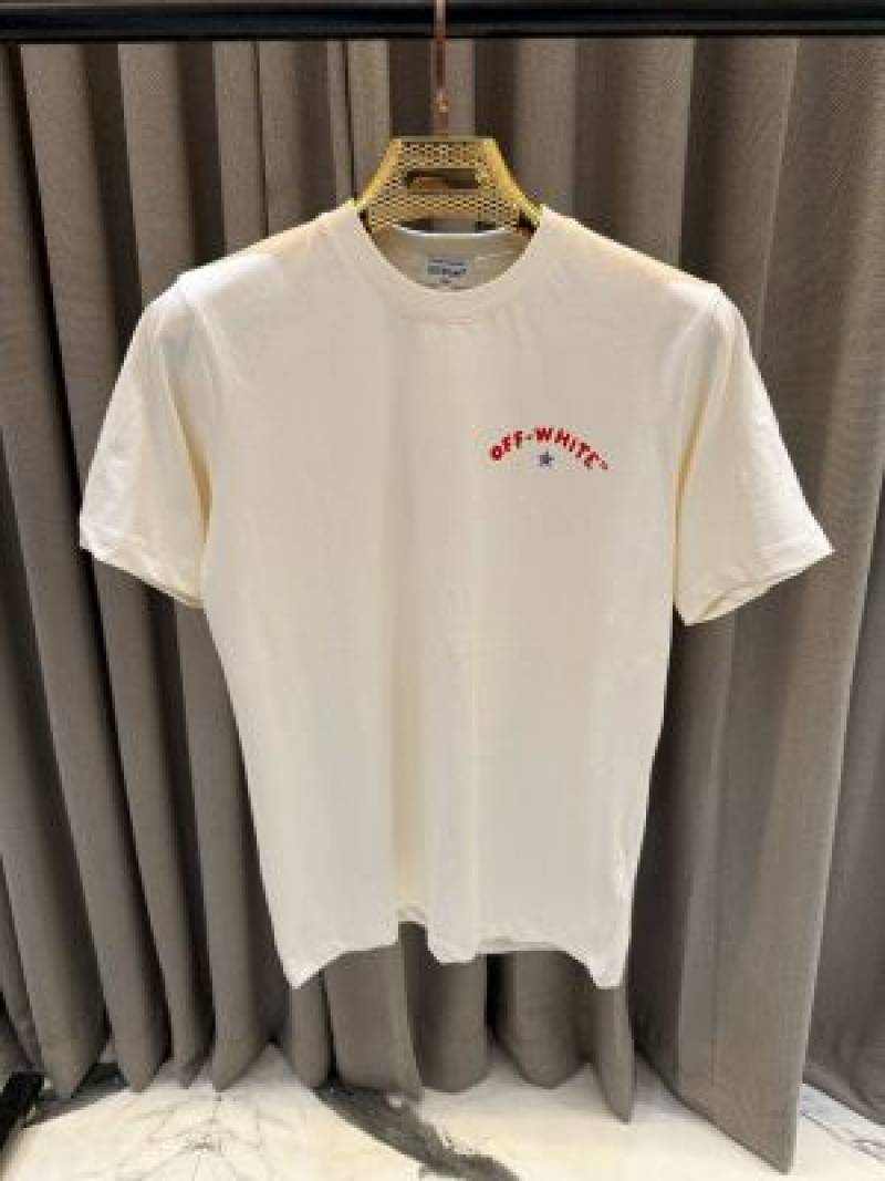 Off-white Chest Logo Round Neck T-shirt Cream