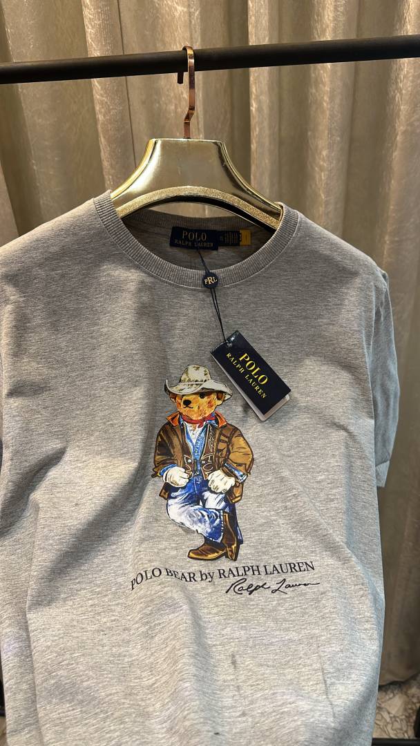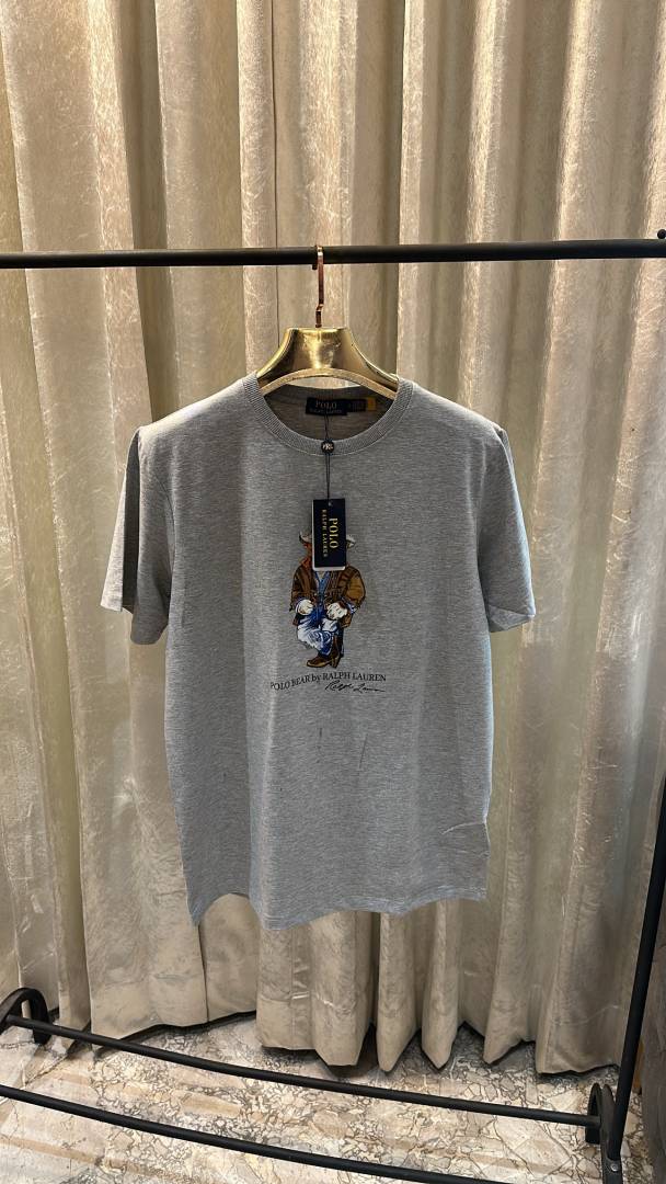 POLO RALPH_LAUREN TEDDY LOGO PRINT PREMIUM HALF SLEEVES GREY TSHIRT