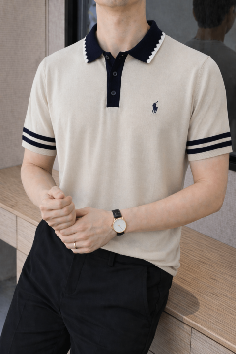 Ralp h Lauren Polo Imported knitted Cream Super Premium Collar Neck T-shirt F3653-CR