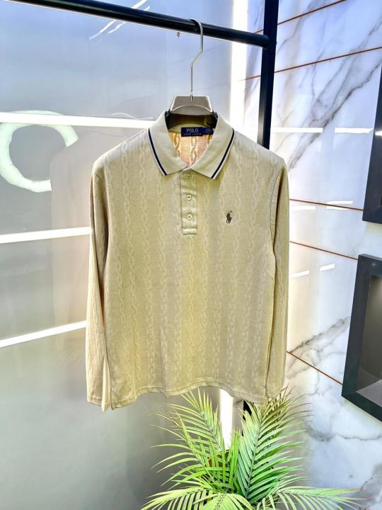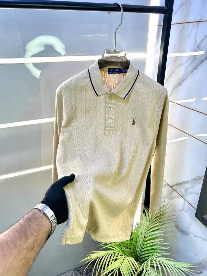 Ralph_Lauren Beige Knitted Full Sleeves Premium Collar T-shirt F2989-BE