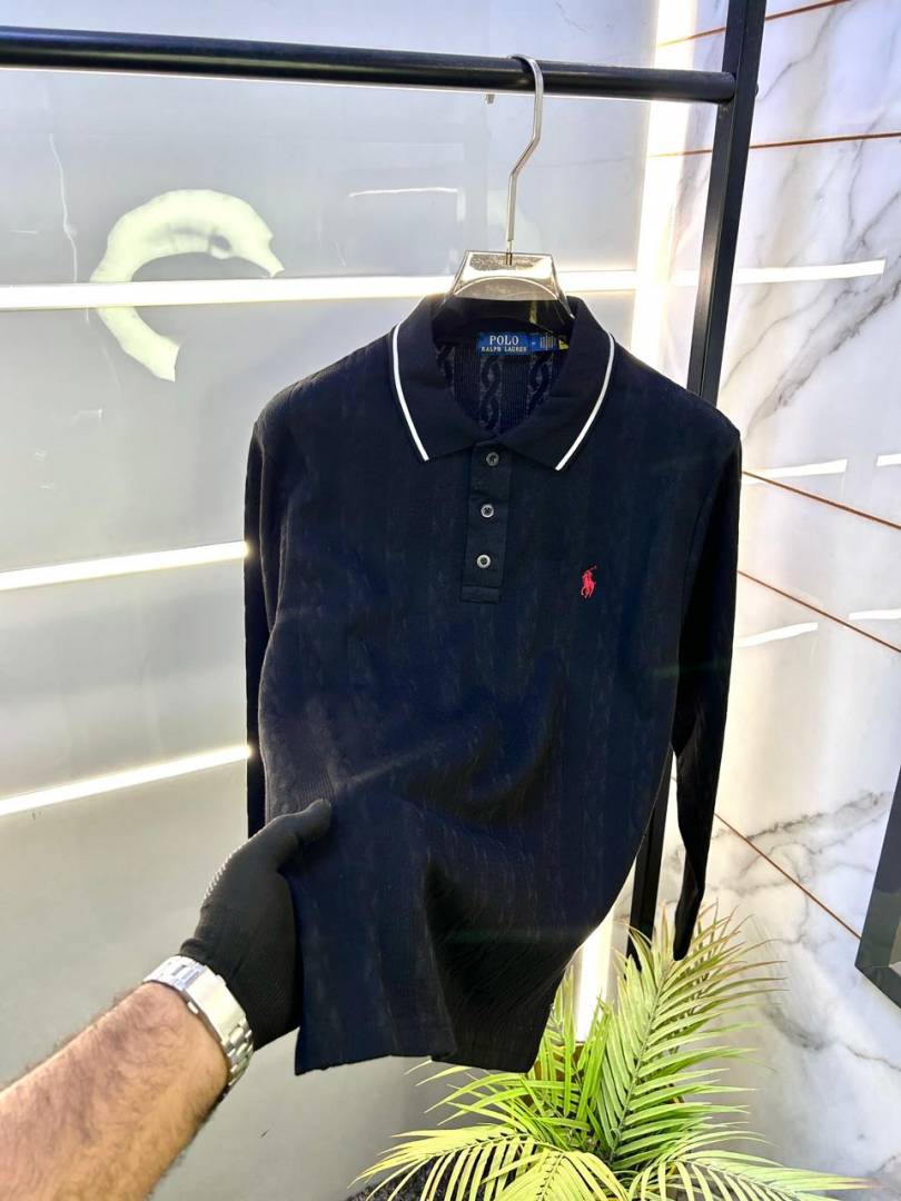 Ralph_Lauren Black Knitted Full Sleeves Premium Collar T-shirt F2989-BL