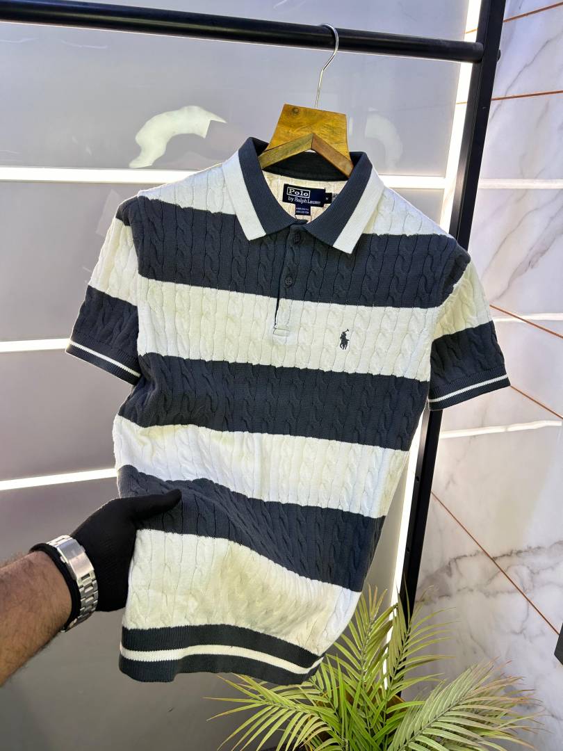 Ralph_Lauren Grey Imported Knitted Polo Collar Neck T-shirt F2805-GY