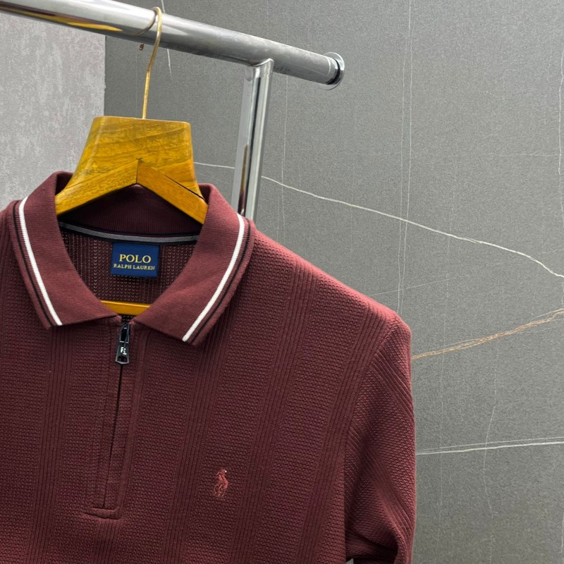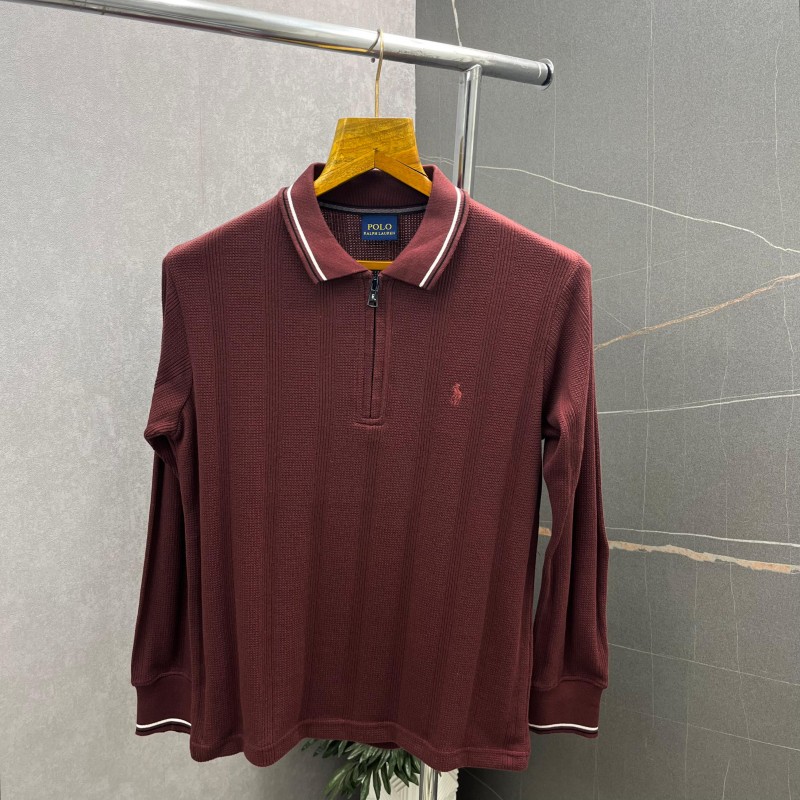 Ralph_Lauren Maroon Knitted Full Sleeves Premium Polo Neck Tshirt 420