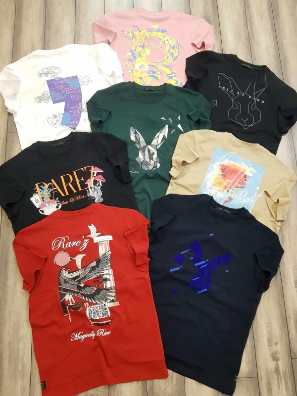 Rare Rabbi t Premium Round Neck Tshirt Front Logo Printed Blue 2161