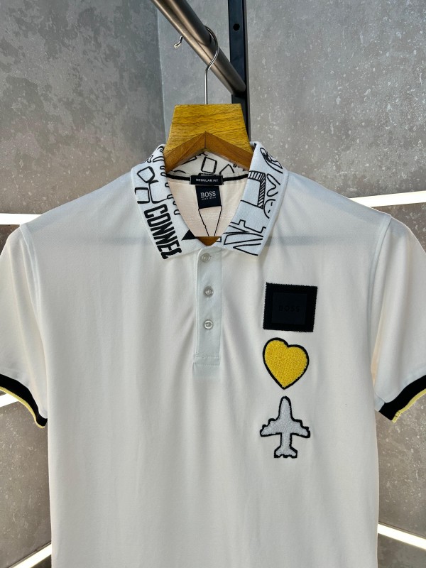 Sale Hugo_Boss Polo White Premium Collar Neck T-shirt F036