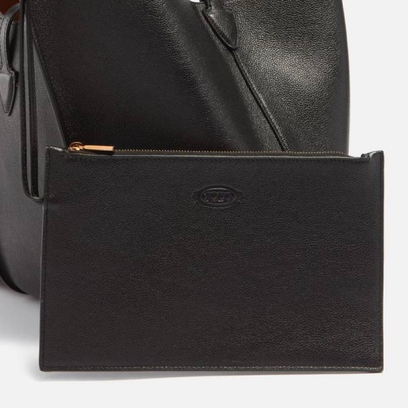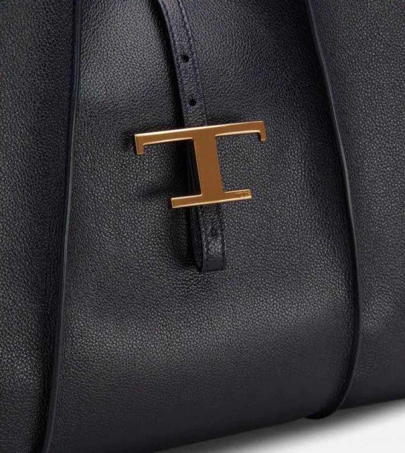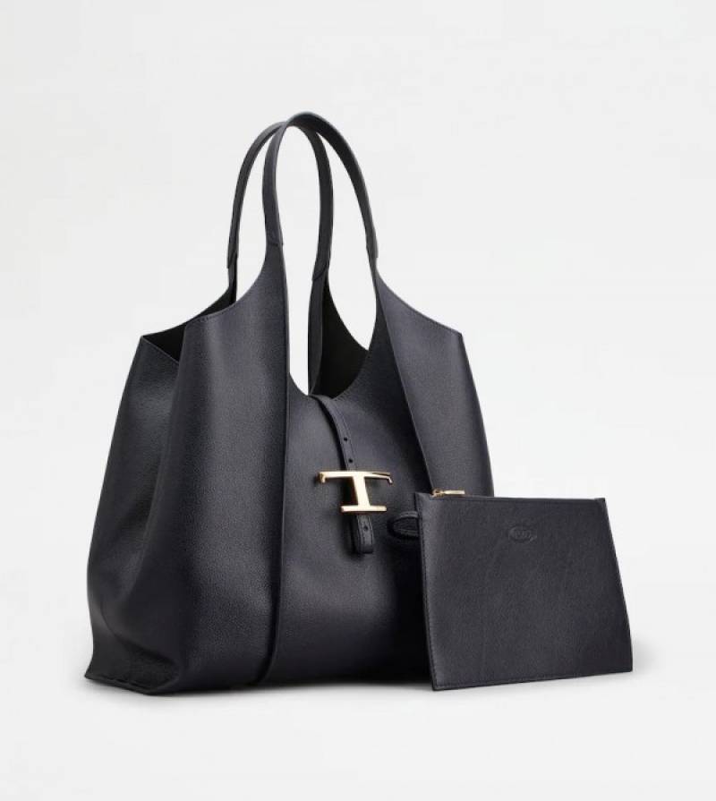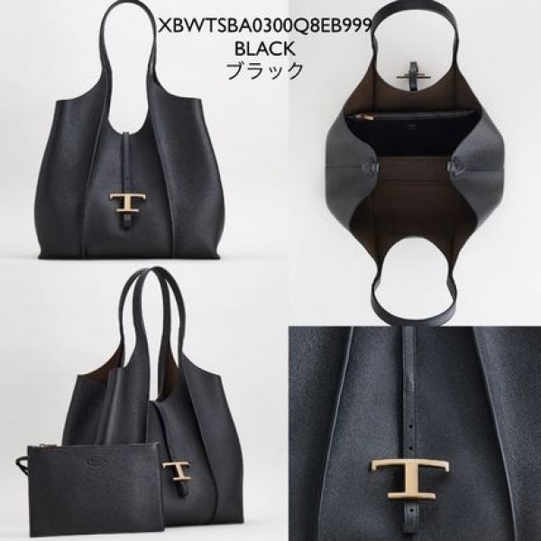 Tods T Timeless Premium Quality Leather Bag With Extra Pouch & OG Magnetic Box With Dust Bag (Black - 444)